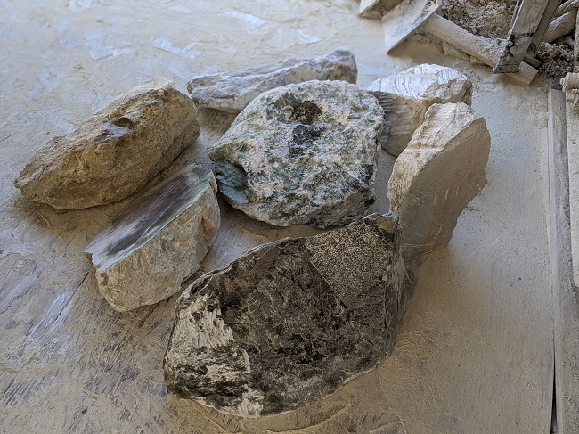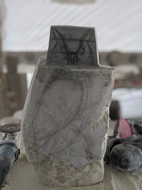The soapstone I used for this piece was what my supplier calls ‘Color Plus’. While at his warehouse picking out my latest batch of stone he pointed me towards this large pile of boulders that hadn’t yet been processed meaning, often he will pre-cut stones so you can see the color on the inside, but this particular pile hadn’t been cut yet so they all had the same generic grey color as they typically do in their raw state.