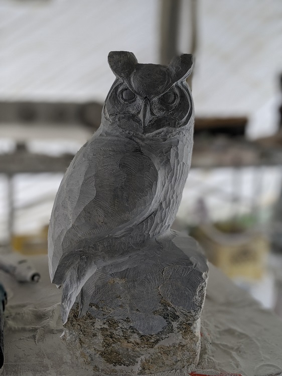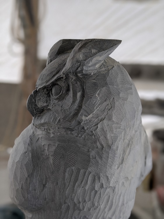 I realized I needed to get back to the ROOTS of my business, and to take care of the foundation, and so I decided I would focus primarily on bears as a point of strengthening the core, foundation, and roots of my business. In recent months as I have continued to carve bears I have also been branching out with a new series of abstract pieces and upon returning to the carving studio recently after a week off in my hometown, I decided to continue with the wildlife theme but this time I’d carve an owl.