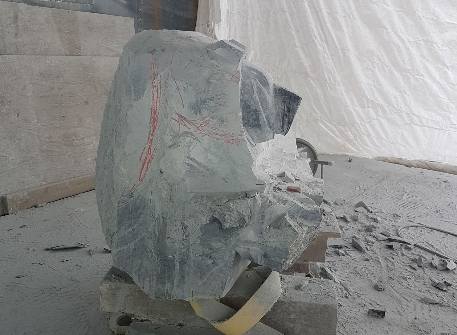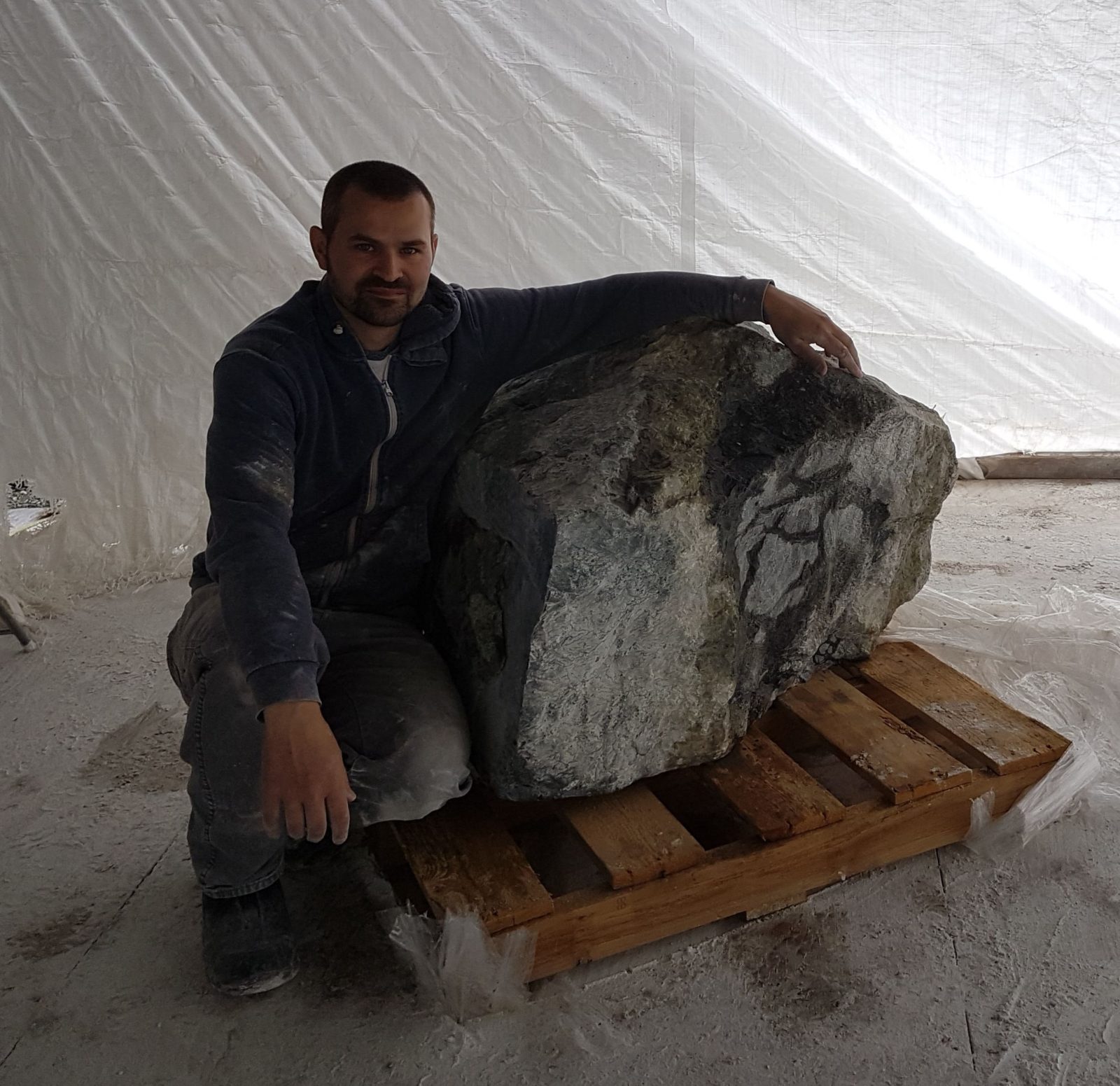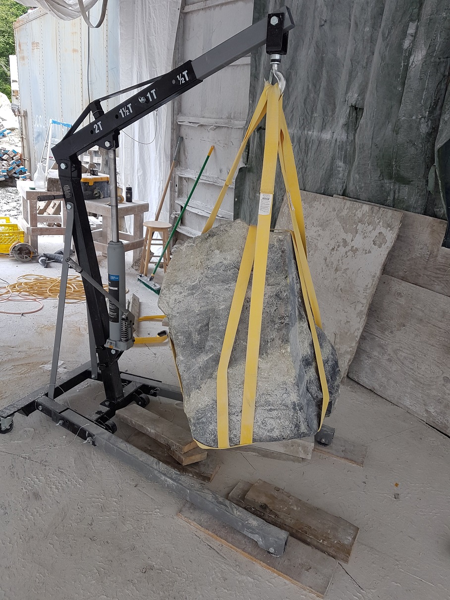 After some talks the project was underway and the first stone I went after was this larger brucite boulder I spotted a year earlier. Luckily it was still available and I had it delivered, along with 2 others marble blocks to my studio in Squamish BC