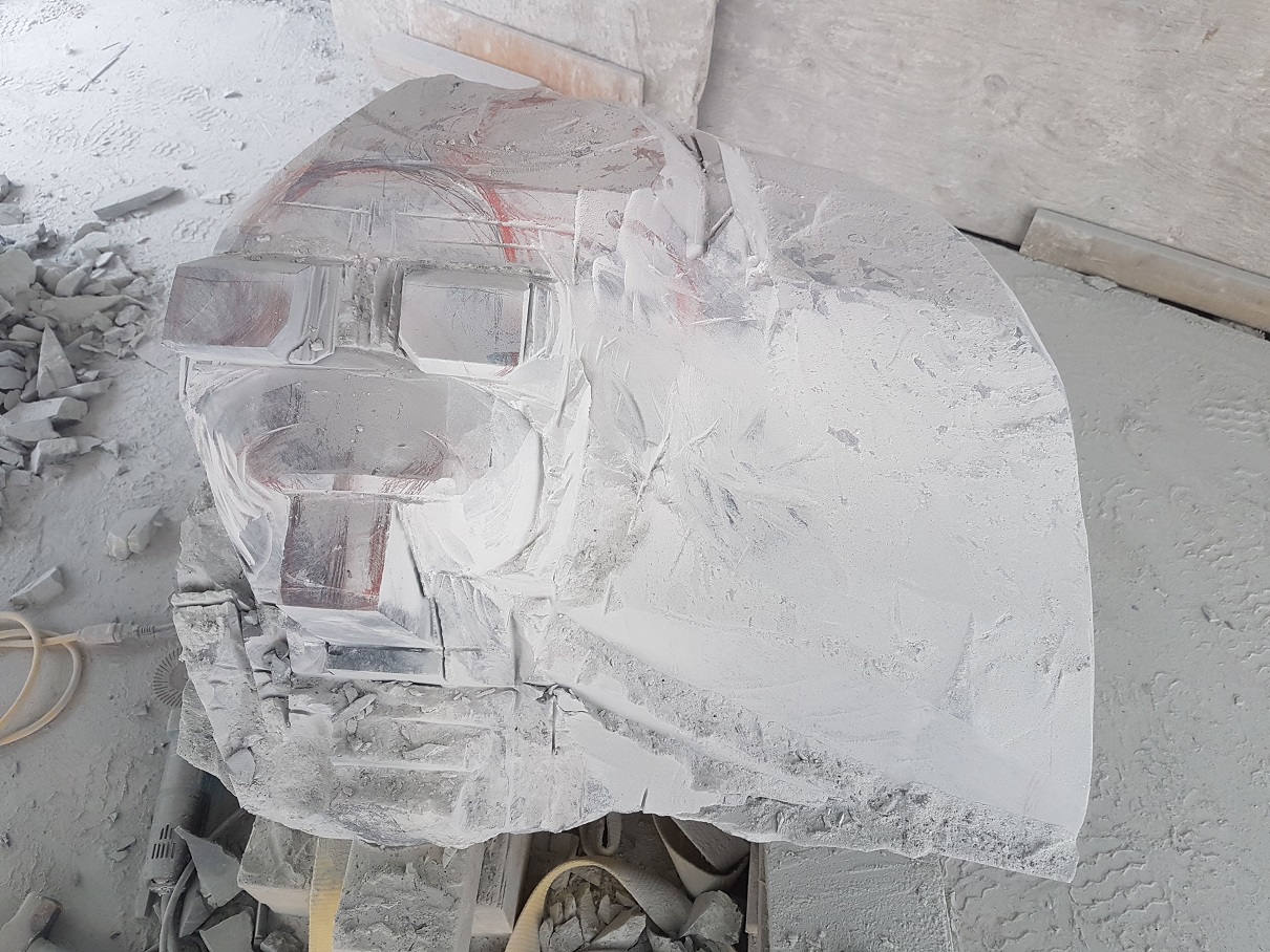 I knew this massive dark-black, green boulder with bands of light lime green was to be the first project I would undertake. I had conceived this idea to create 3 large museum quality sculptures where I would push the level of intricacy and detail, aiming to create something that would last, and stand the test of time. Committing 2 months to creating a sculpture is a substantial amount of time and so for me it makes sense to really get the most out it and to create the best piece possible. Its quite interesting to consider that I could realistically only create around 4 or 5 pieces like this a year. That’s not a lot of pieces when you compare that to a society and world system that lives and breathes mass production. With this piece, instead of creating a lot of work with less detail like many mass produced items, my aim was to go deeper into the piece, adding more detail and refining the form more specifically.