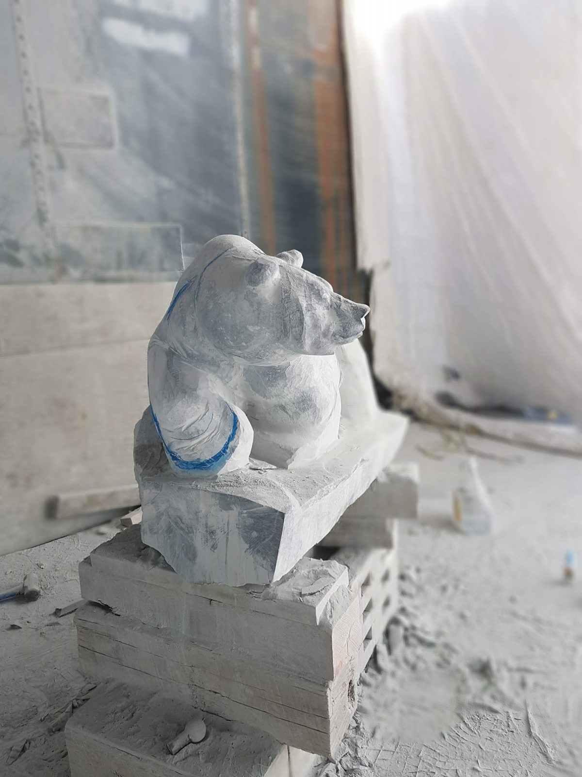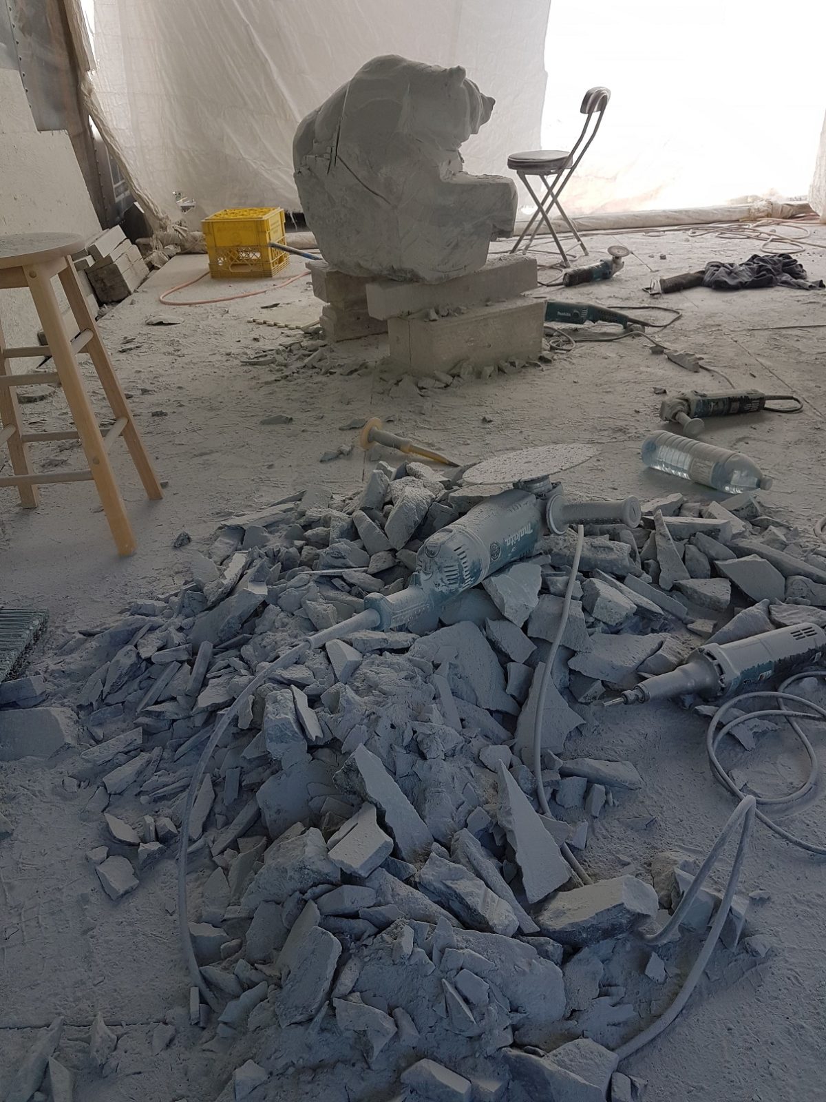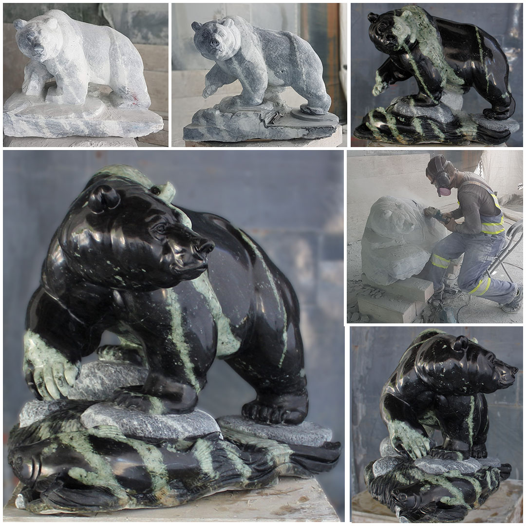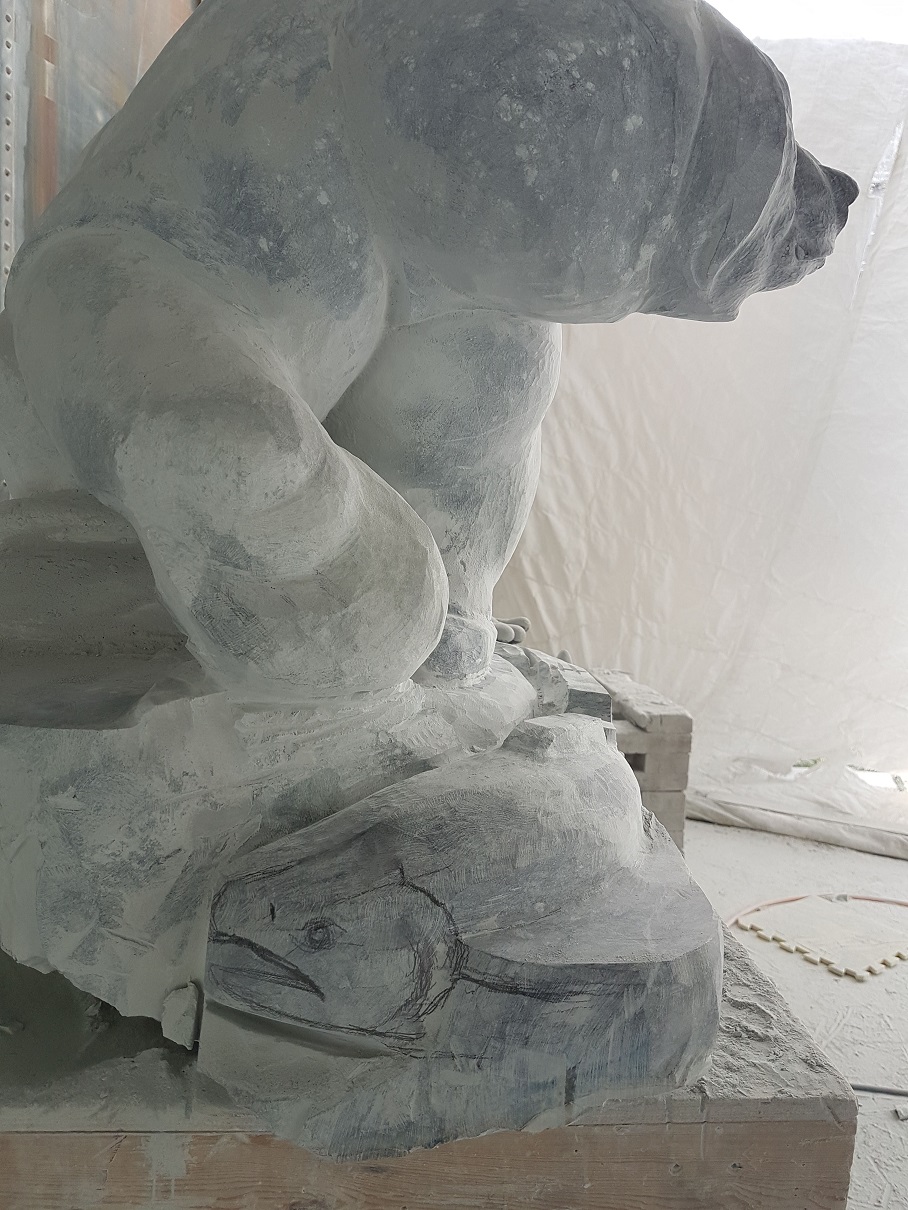 This early stage is quite enjoyable as the stone quickly begins to take the form of the subject you are carving, in this case a large grizzly bear. Right before your eyes the stone transforms from an undefined boulder into a bear that strangely already begins to take on a personality. A personality that shifts, and changes throughout the carving process. In this sense the stone, the piece, the subject, the creation, IS ALIVE!