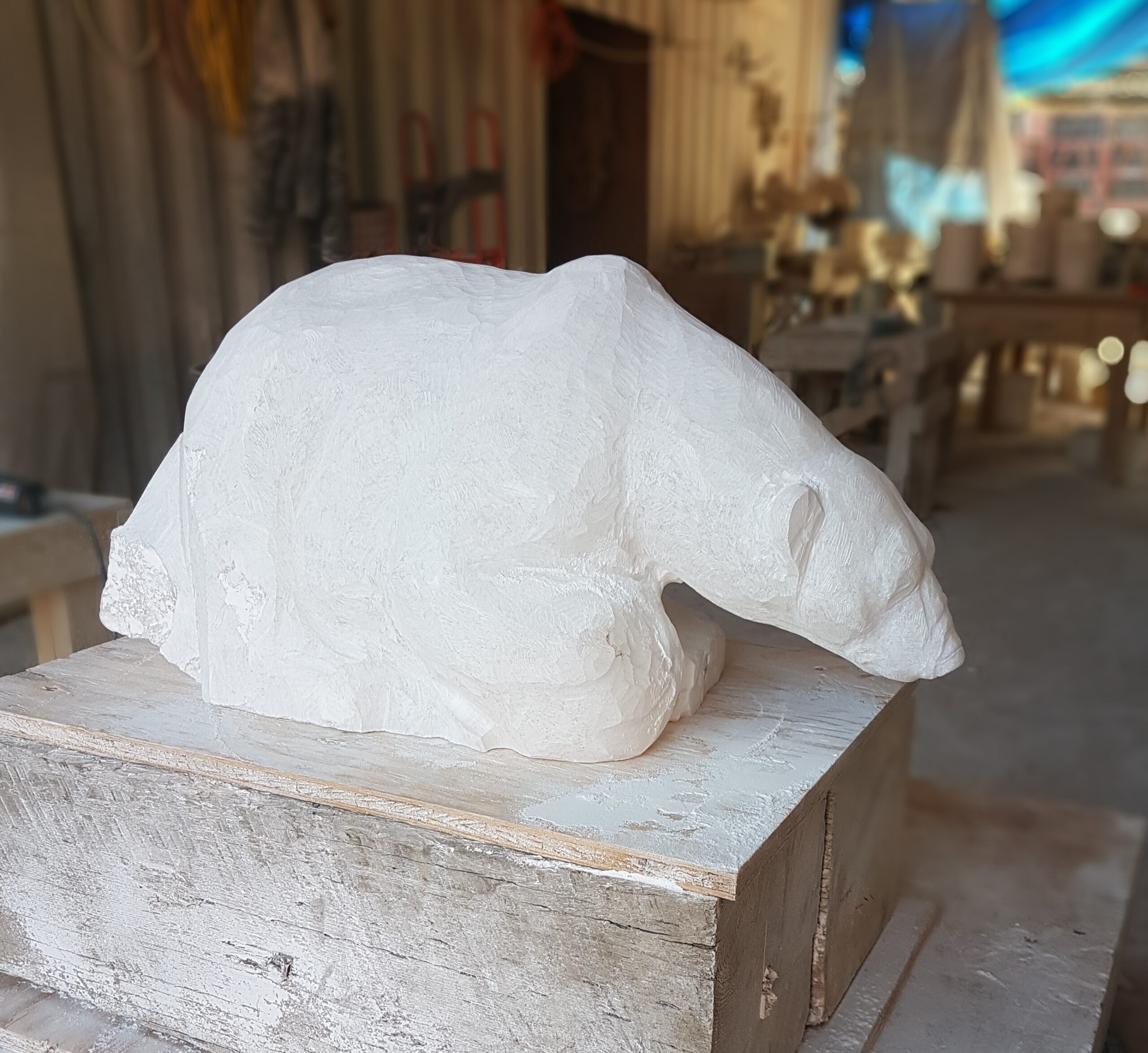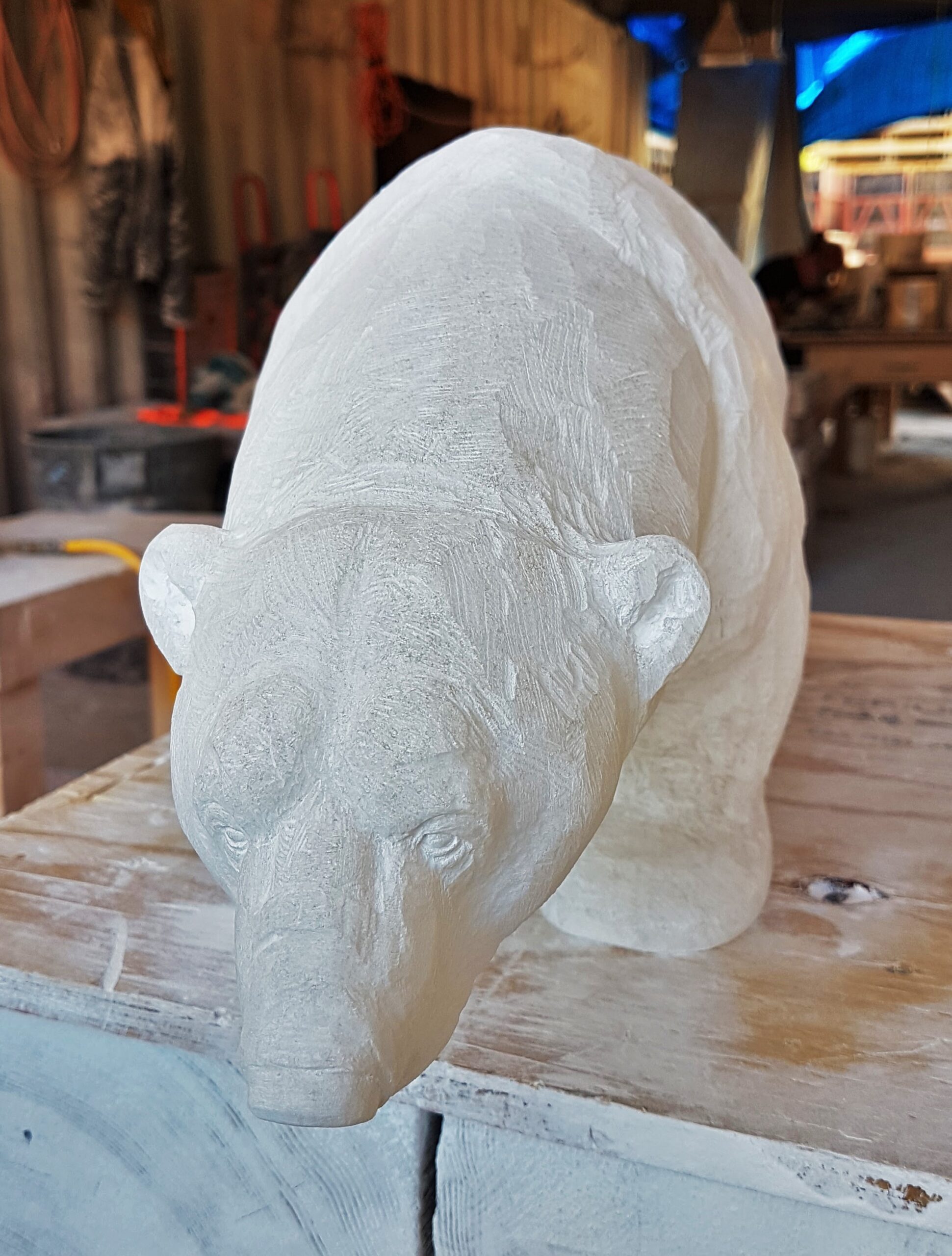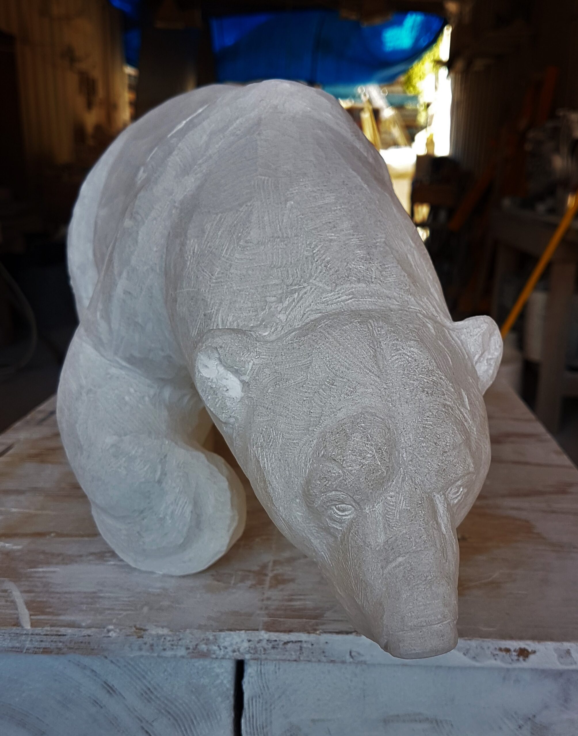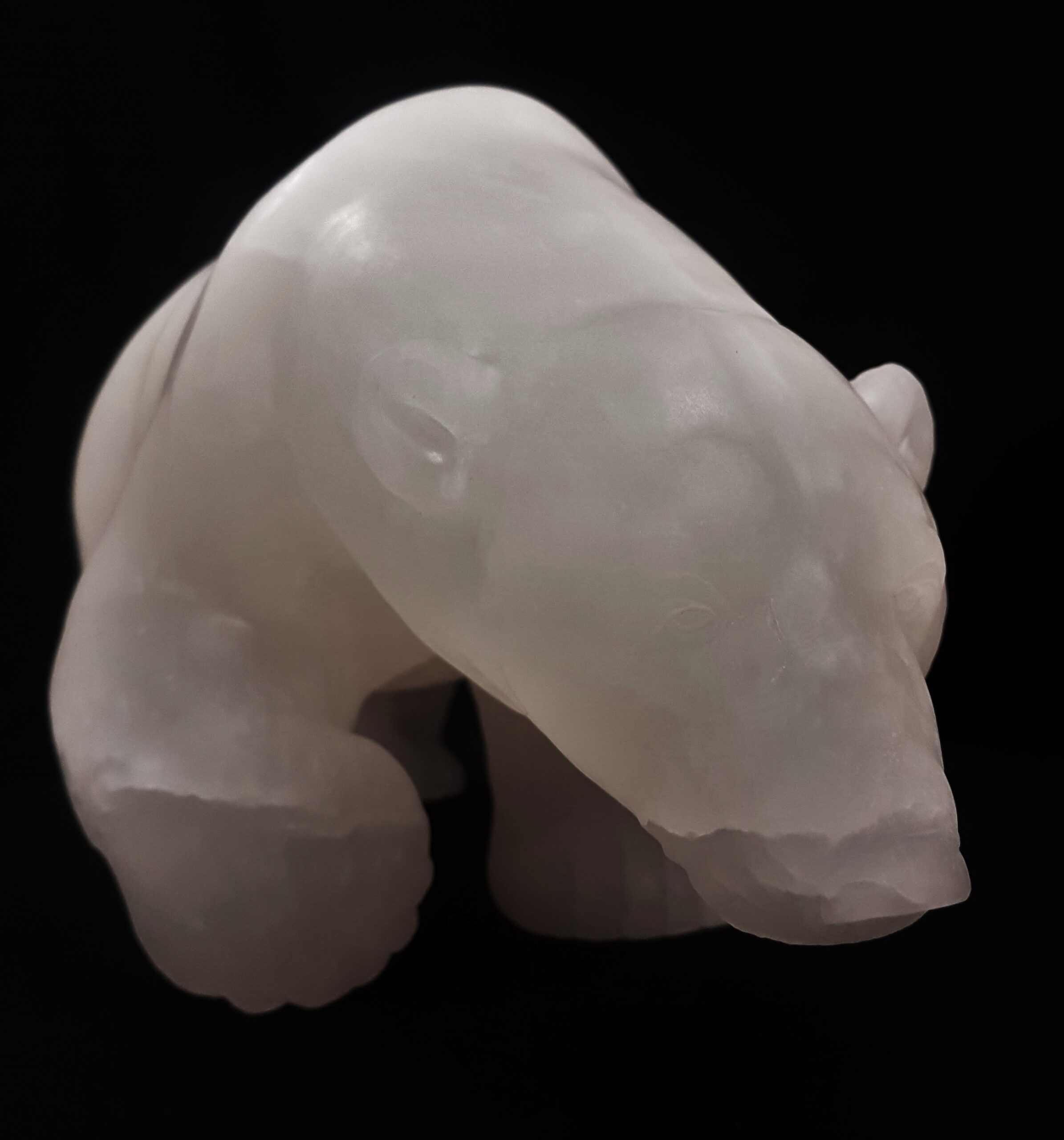Title: “Aura” Animal: Polar Bear Stone Type: White Alabaster Weight: Approx 25lb Size:7(H)x 18(L) x 5(W) inches