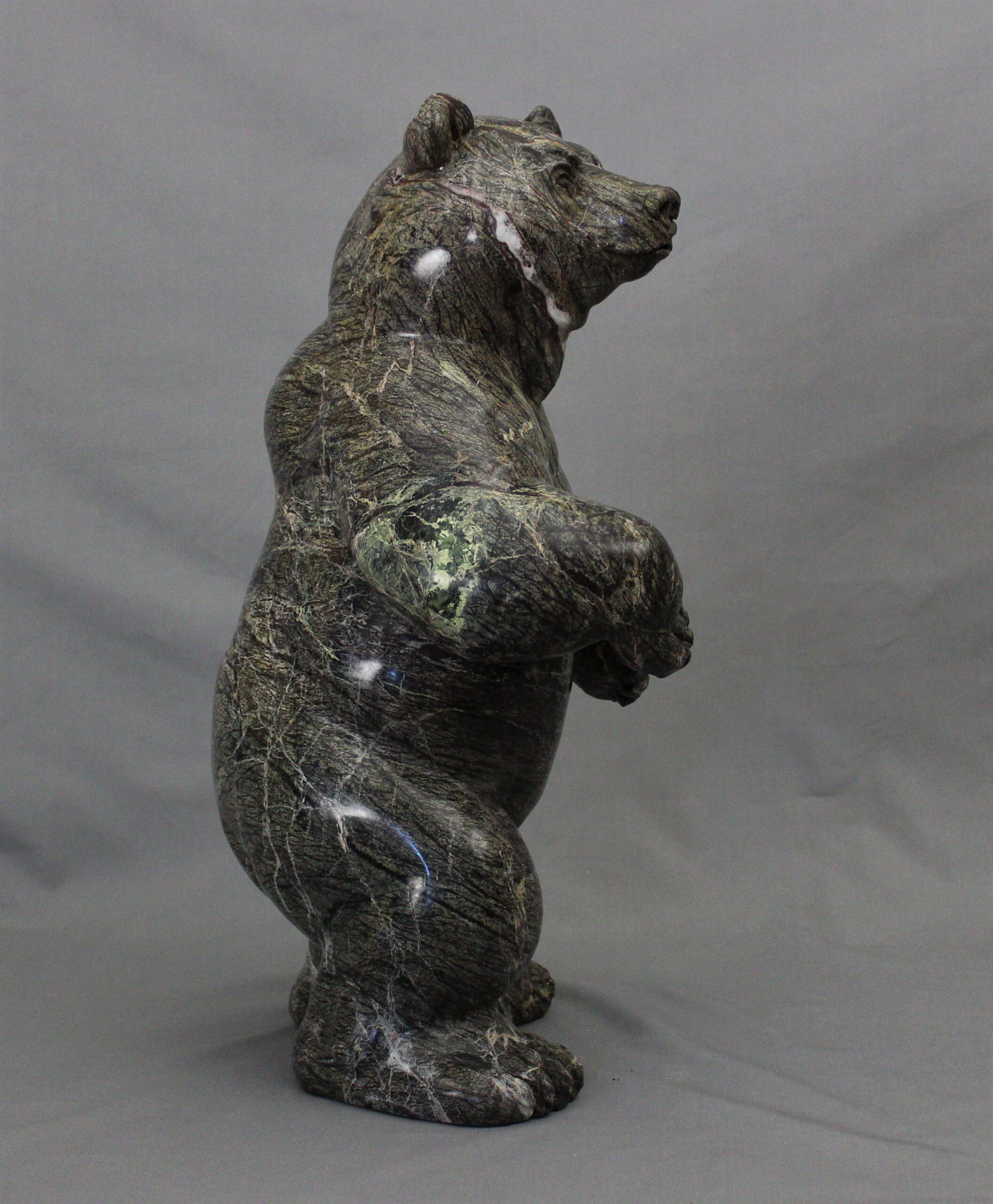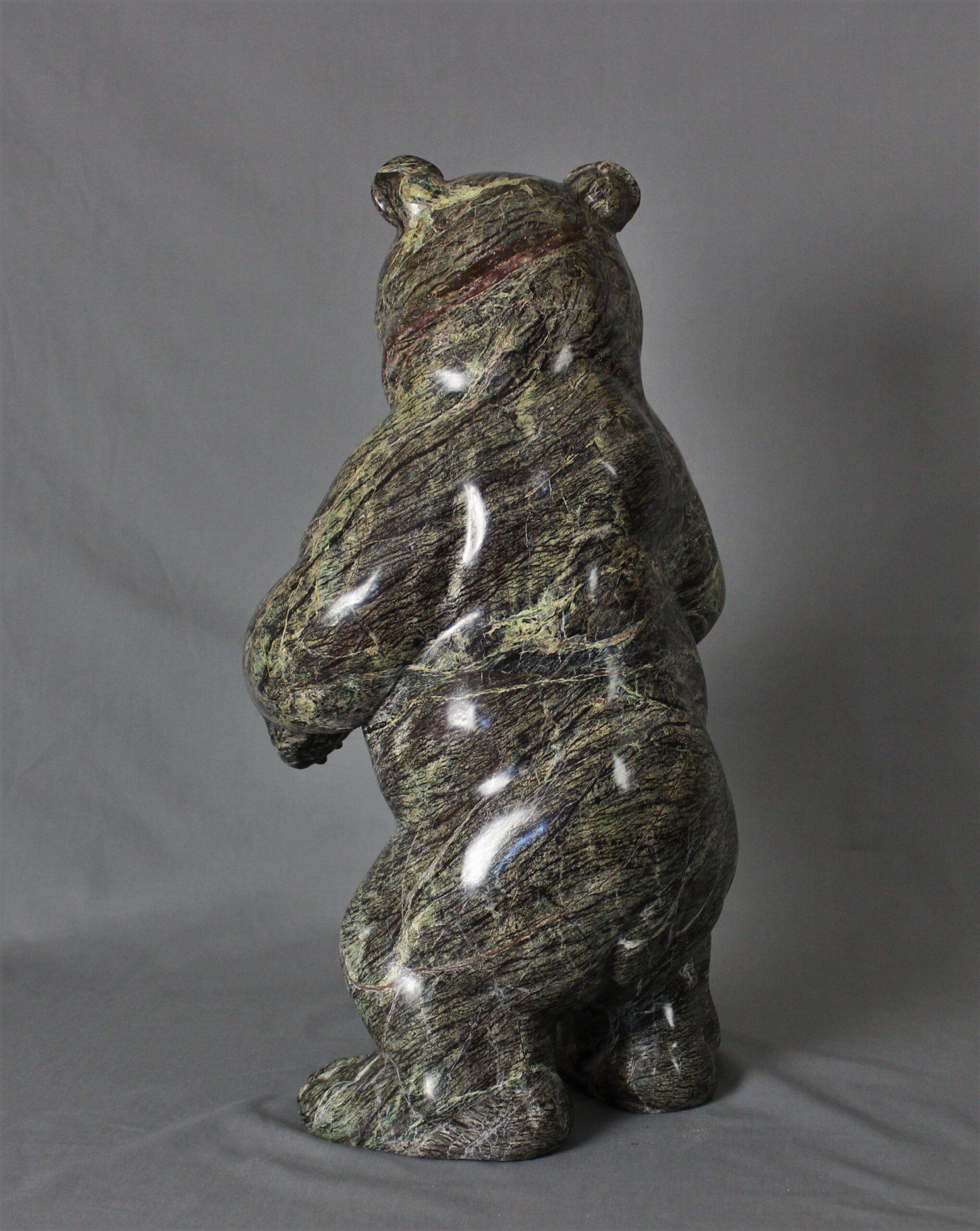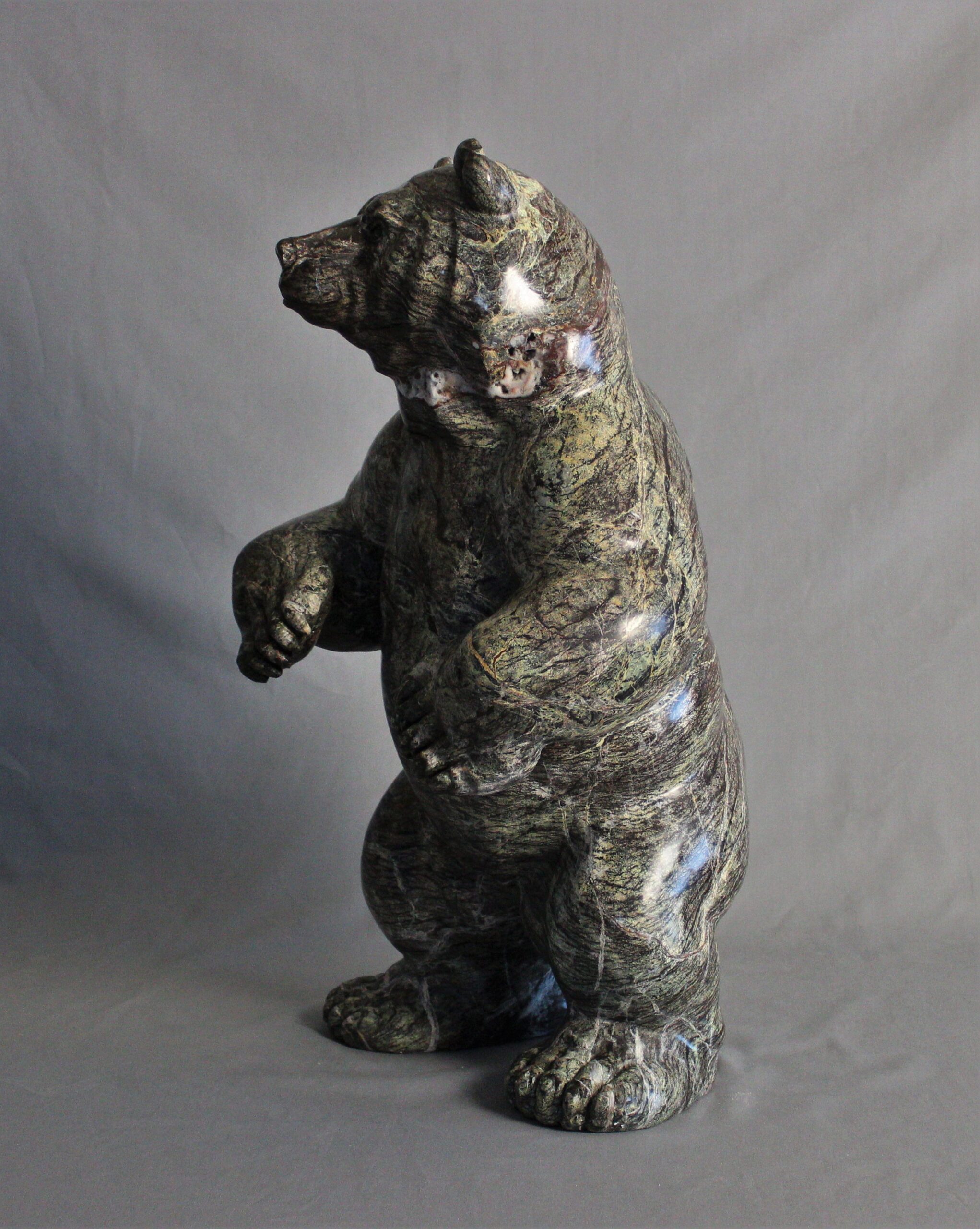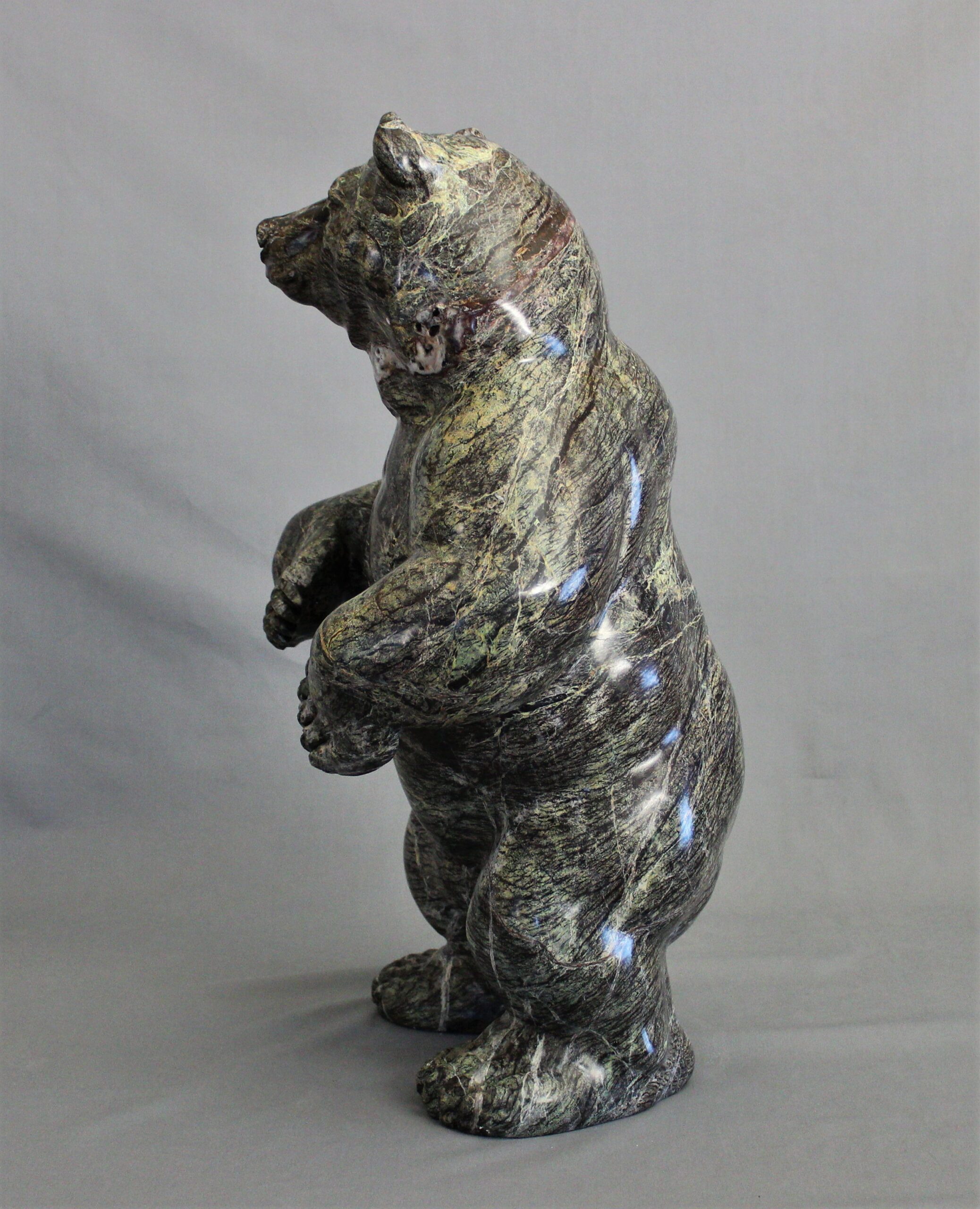 Title: “Coniferous” Animal: Grizzly Bear Stone Type: Serpentine Weight: 90lb Dimensions: 13(L) x 11(W) x 22(H)