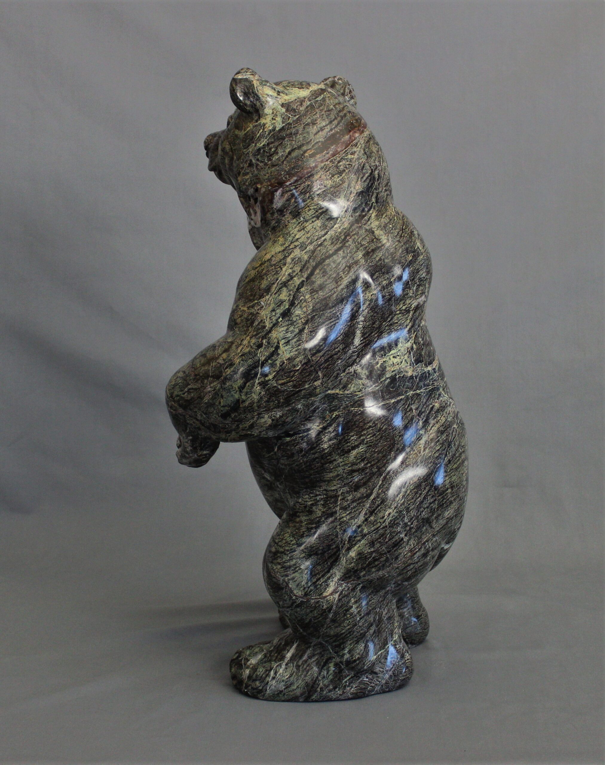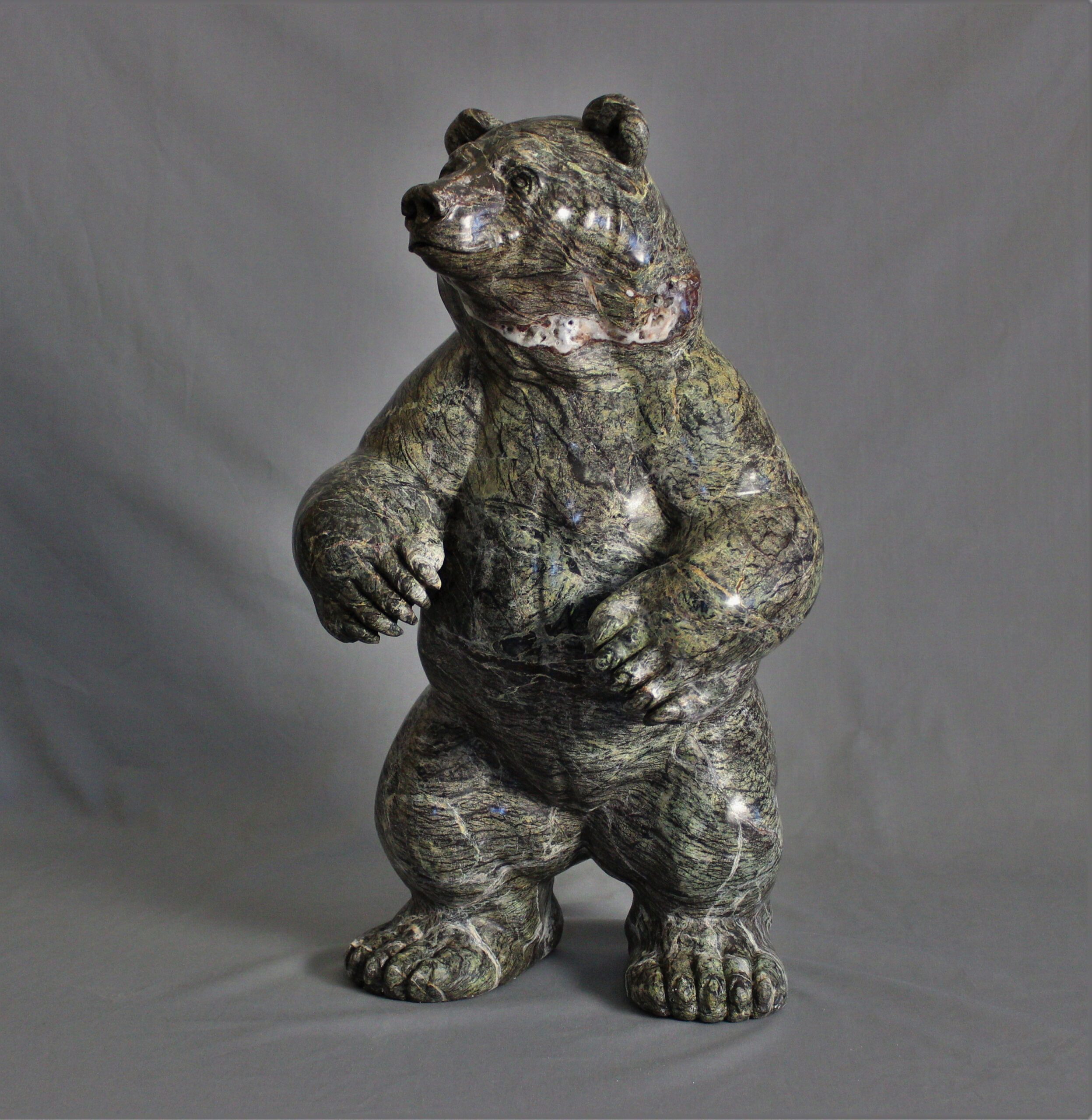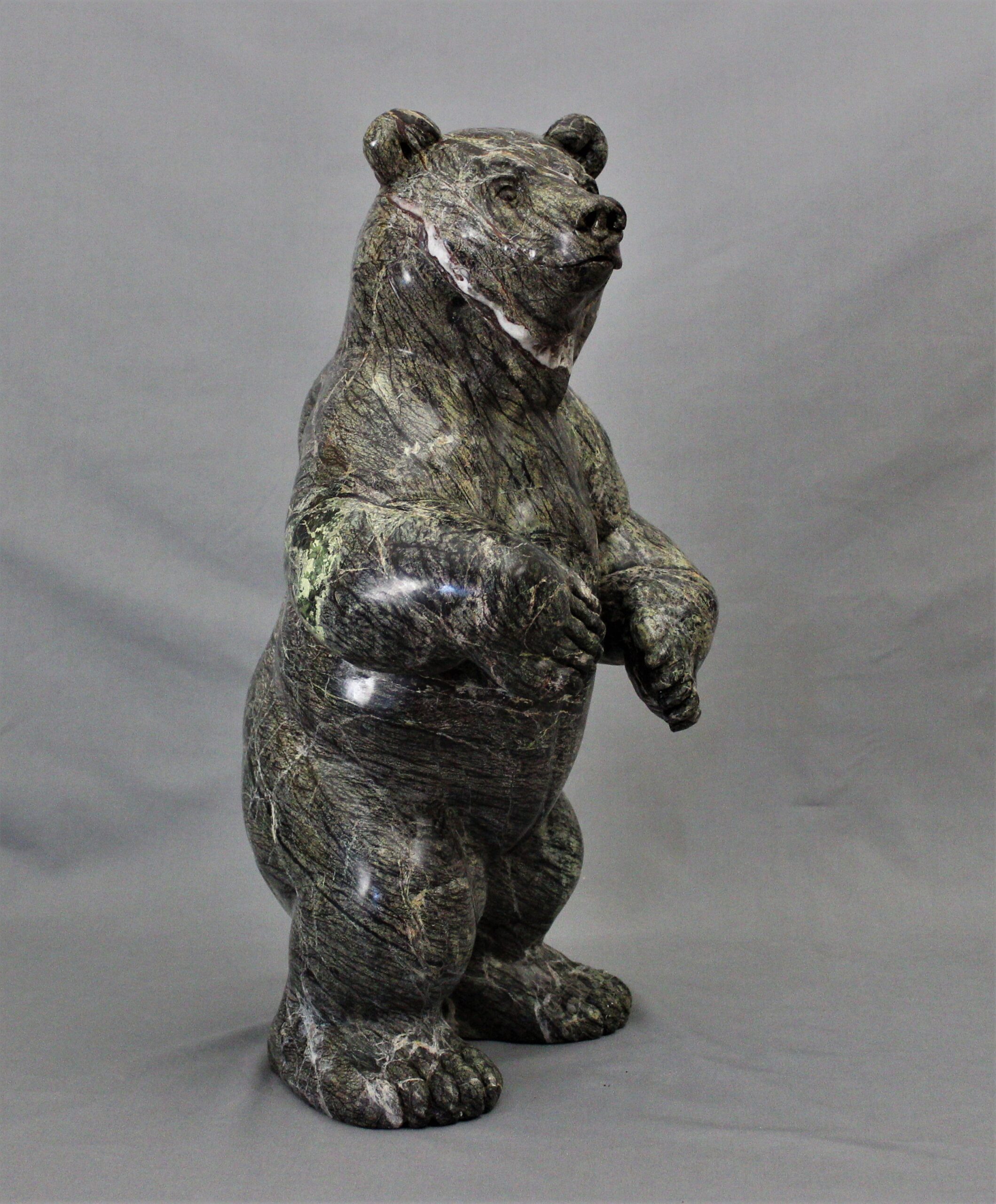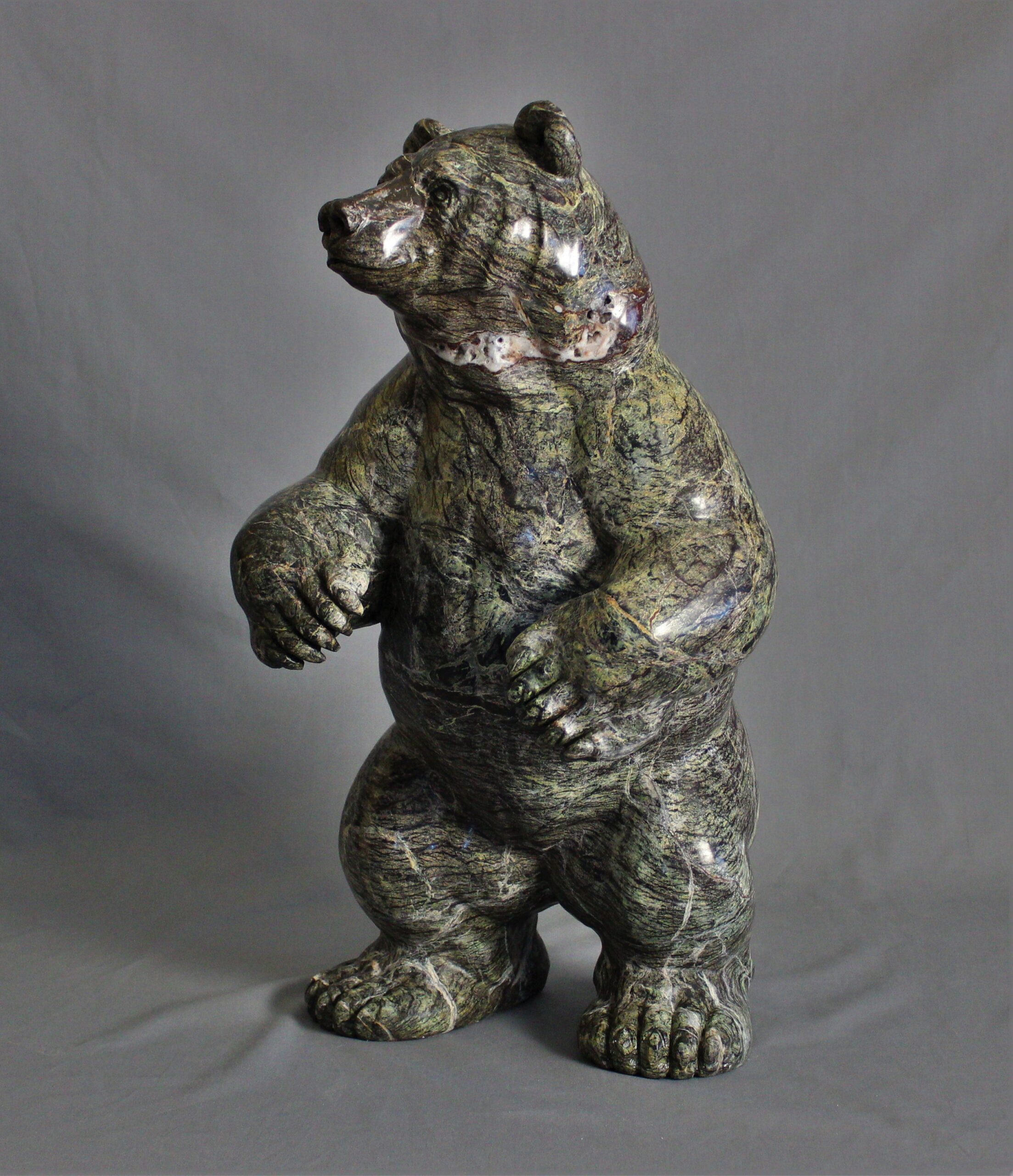 Title: “Coniferous” Animal: Grizzly Bear Stone Type: Serpentine Weight: 90lb Dimensions: 13(L) x 11(W) x 22(H)