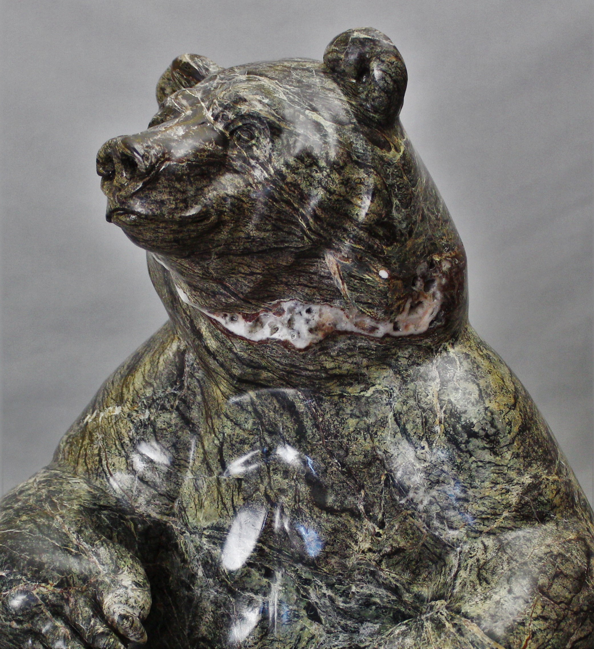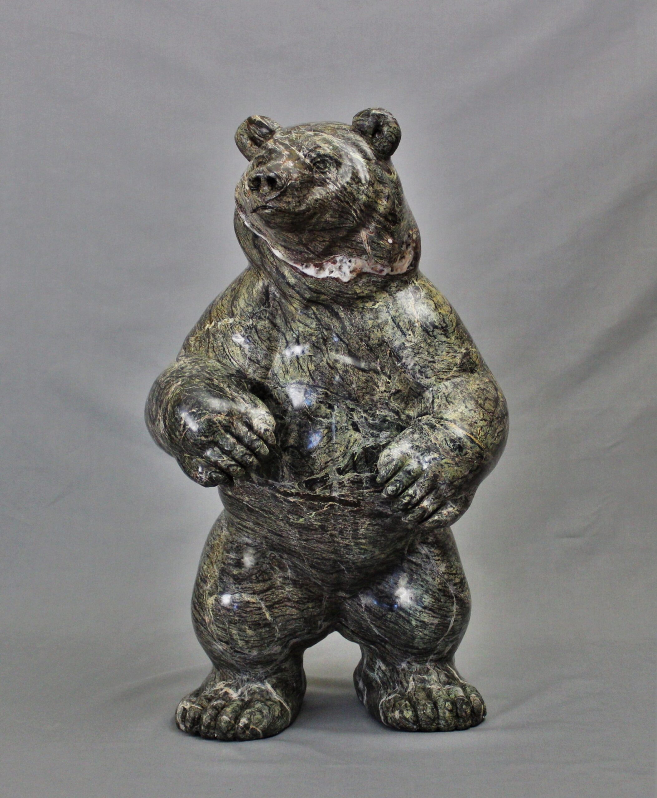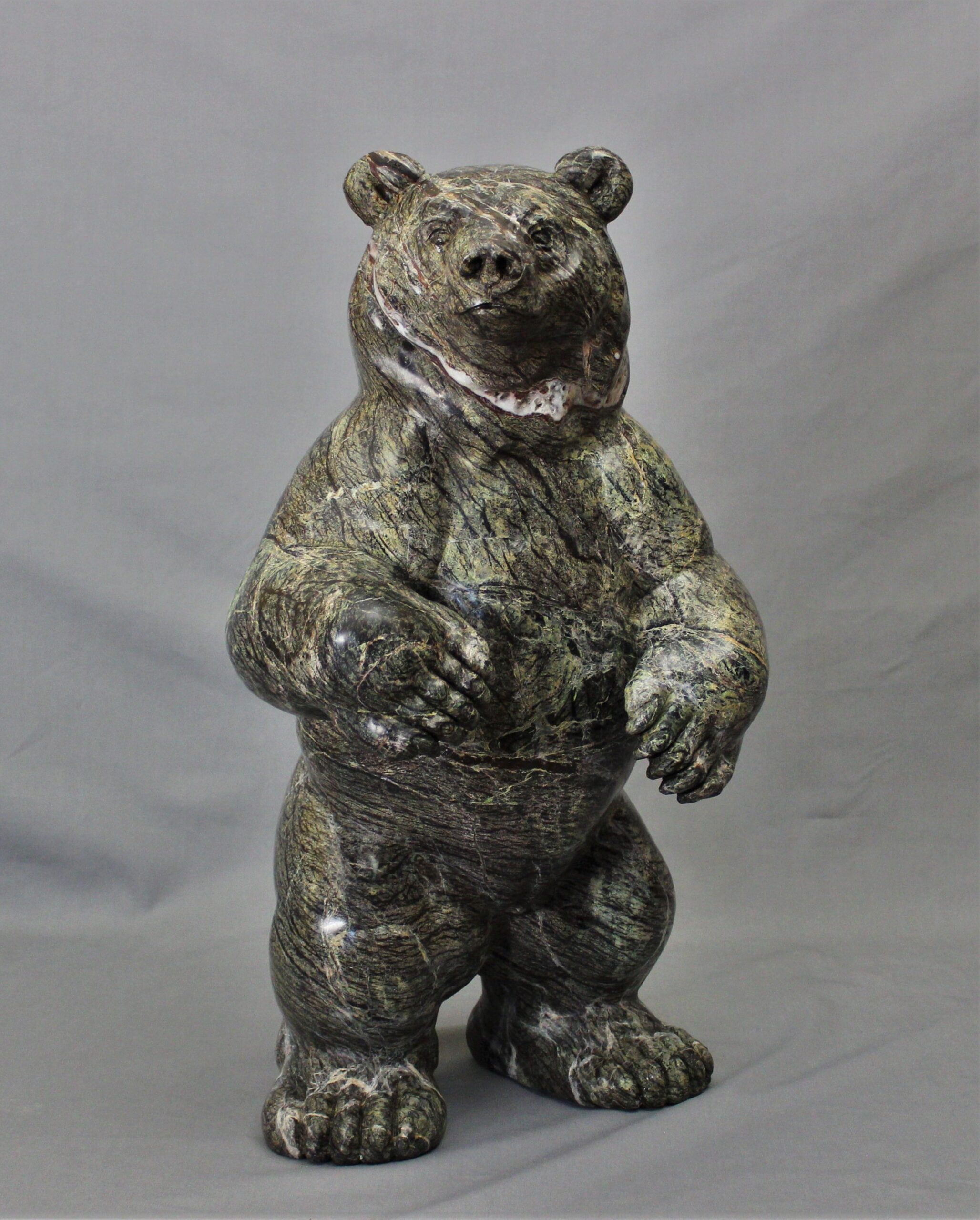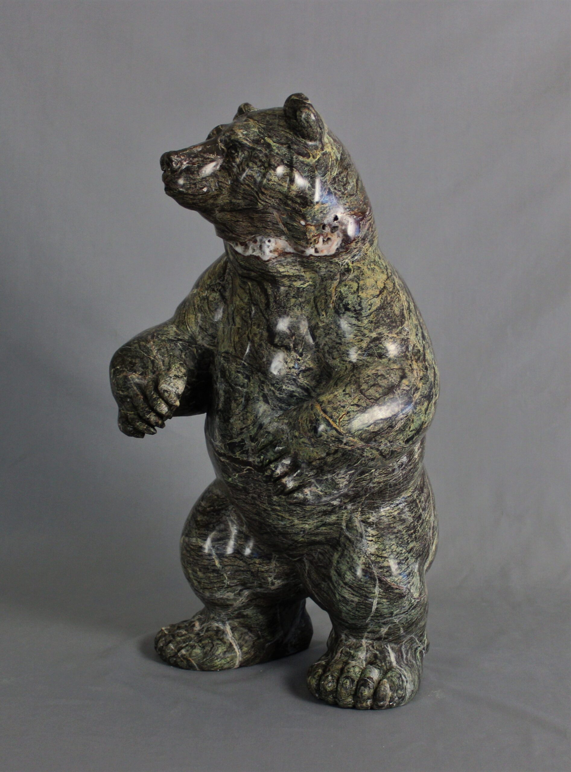 Title: “Coniferous” Animal: Grizzly Bear Stone Type: Serpentine Weight: 90lb Dimensions: 13(L) x 11(W) x 22(H)