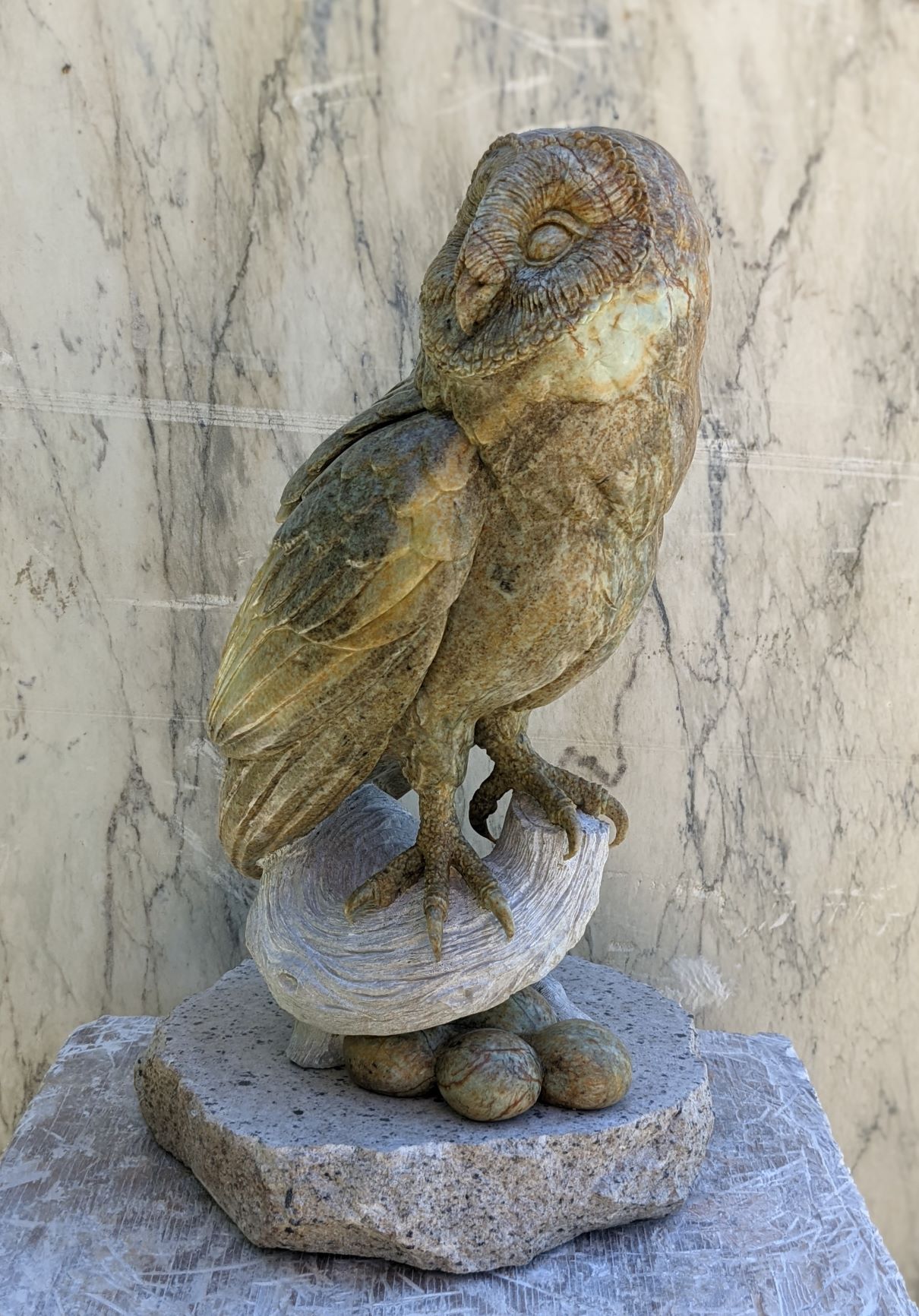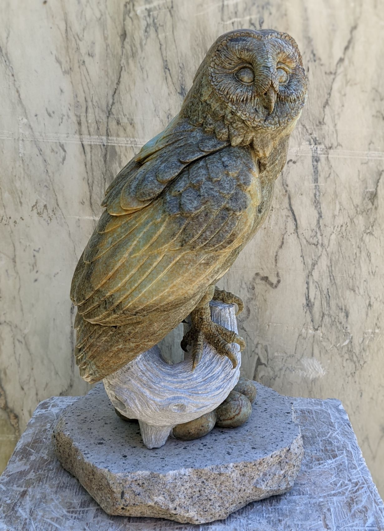 *SOLD Title: Empress Animal: Barn Owl Stone Type: Brazilian Soapstone Dimensions: 19(H) x 9(L) x 9(W) Weight: 50lb
