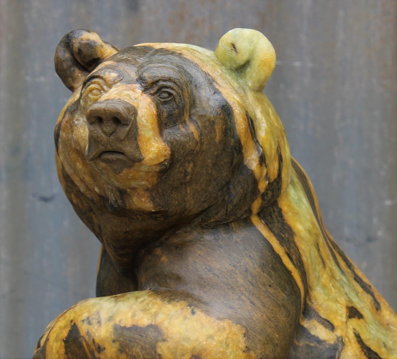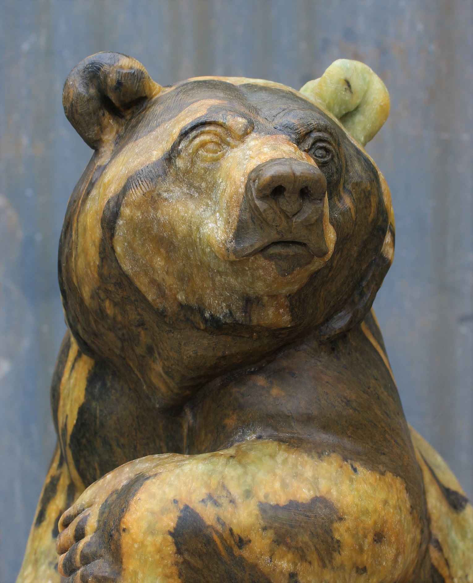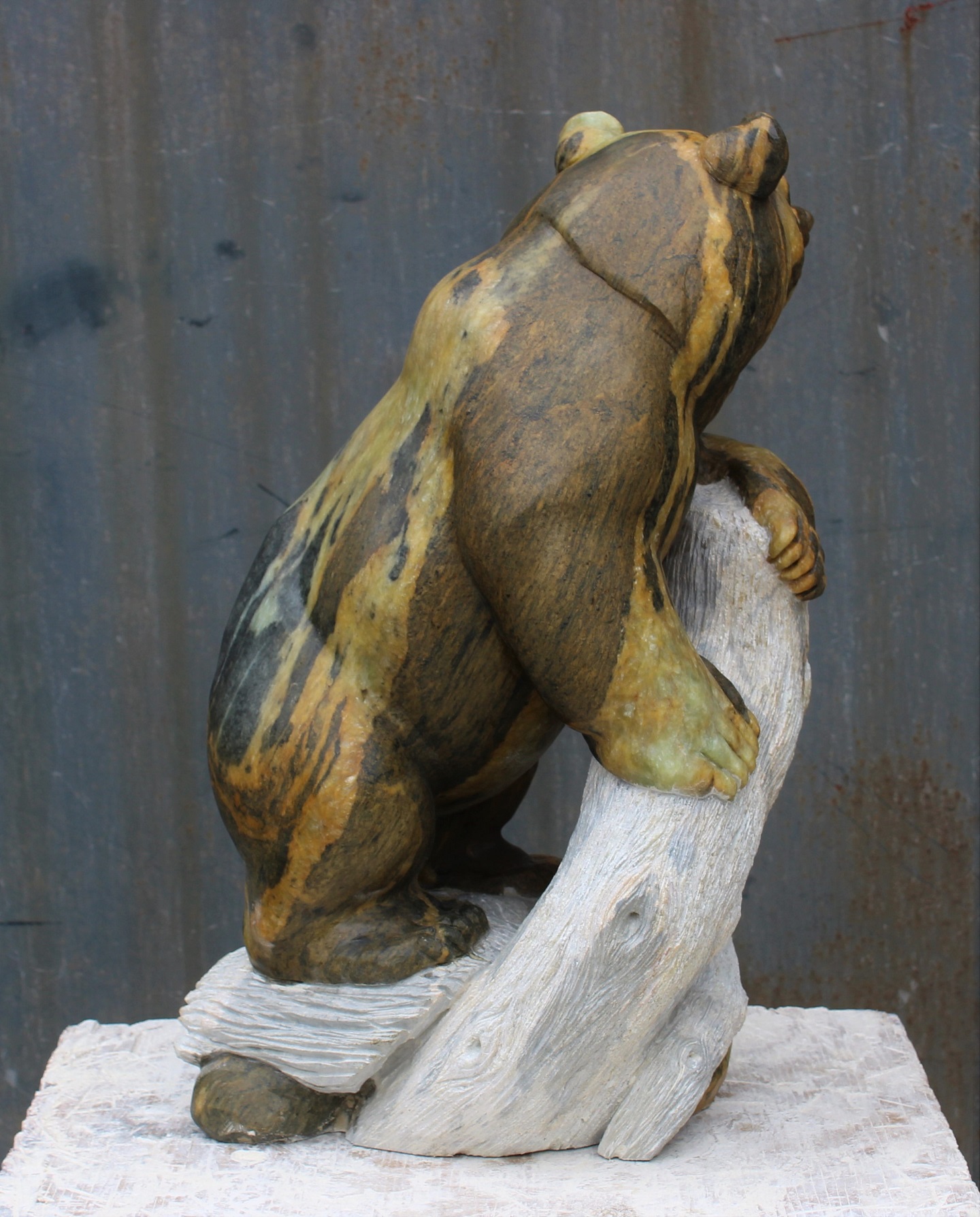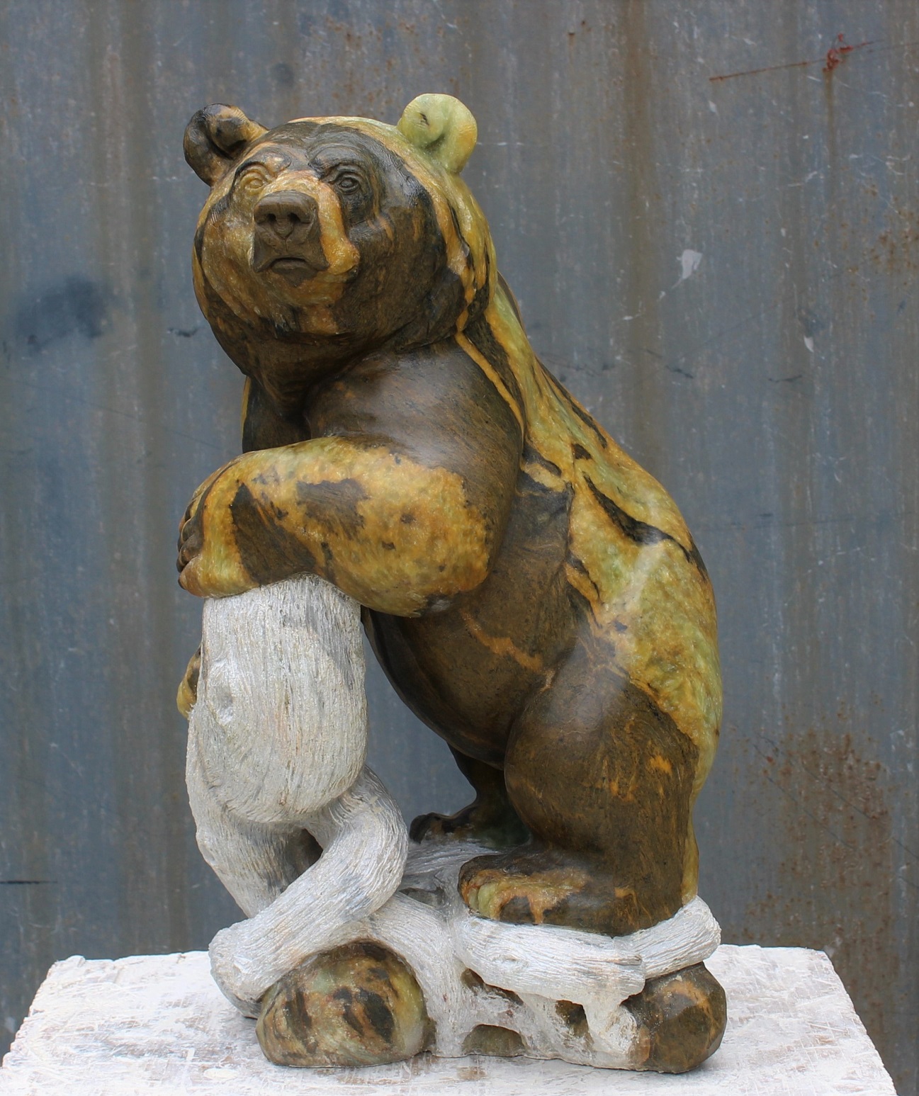 Animal: Grizzly Bear on Logs Stone Type: Soapstone Weight: 80lb Dimensions: 20(H) x 12(L) x 10(W) *SOLD
