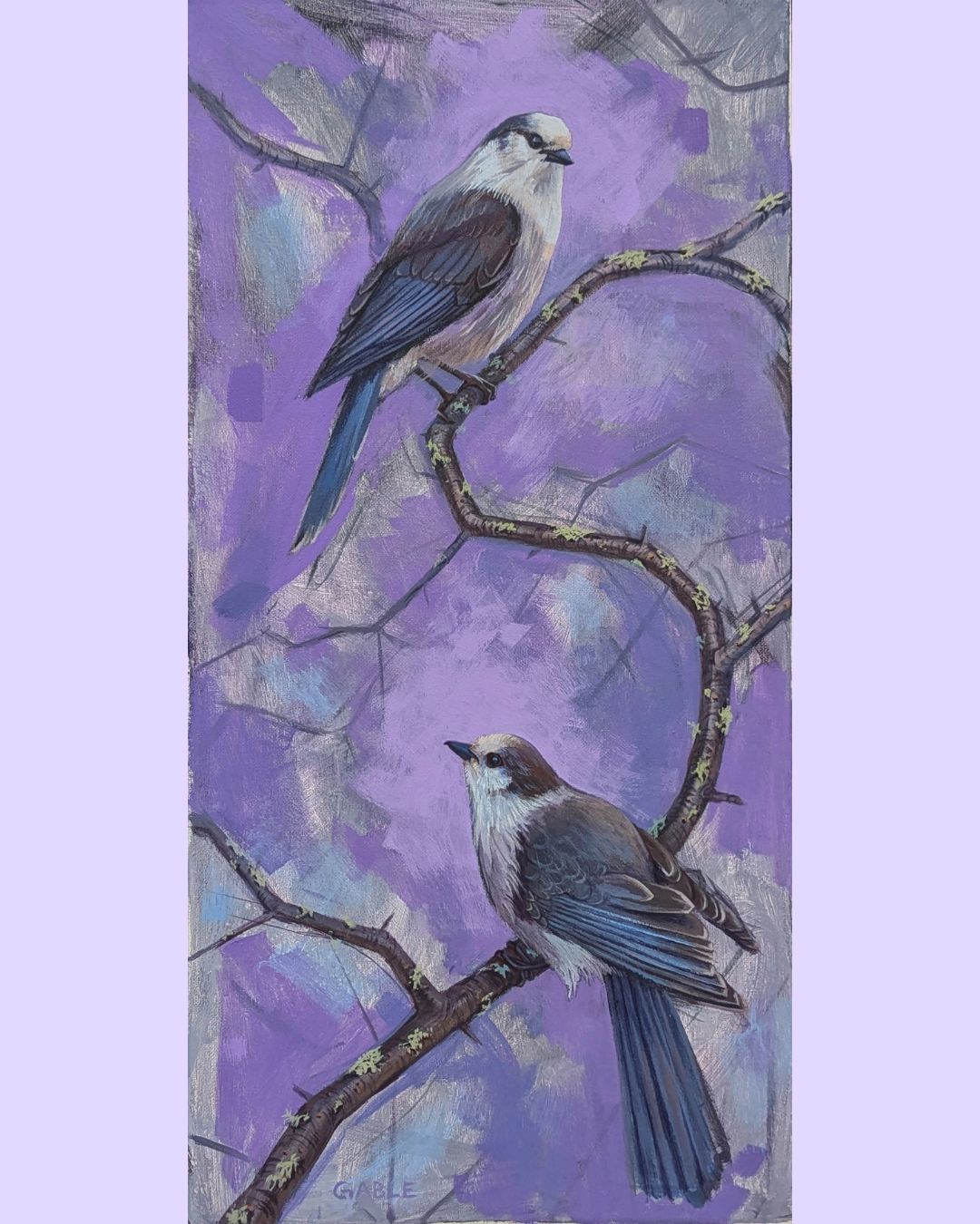 Original 1/1 Songbirds (Whiskey Jack / Canada Jay) Acrylic On Canvas 24 x 12 x 0.50 inch Ready To Hang or Frame Signed
