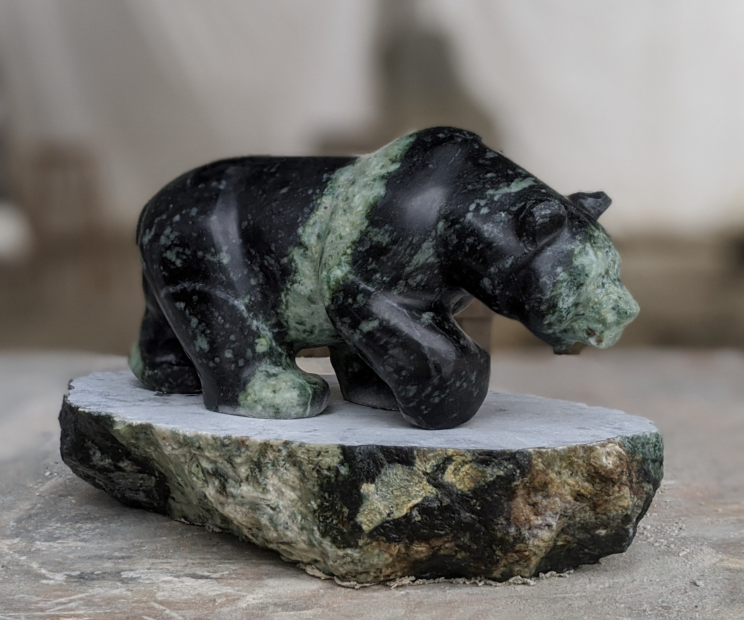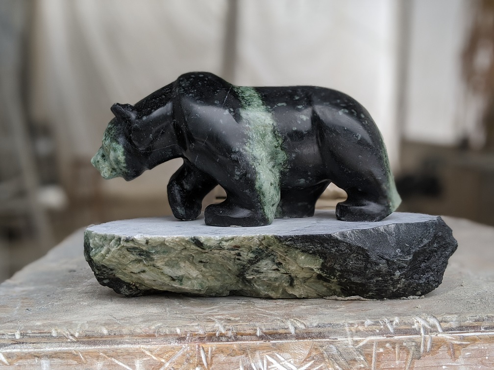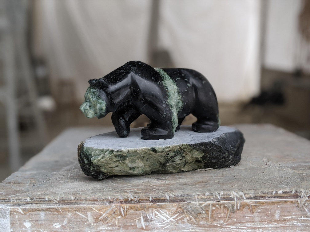 Title: “Moon” Animal: Grizzly Bear Stone Type: Brucite Weight: 20 Dimensions: 12(L) x 7(W) x 8(H)