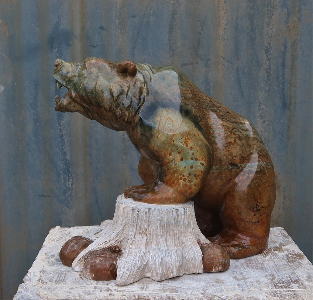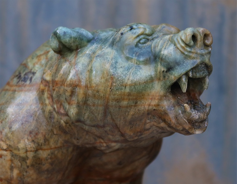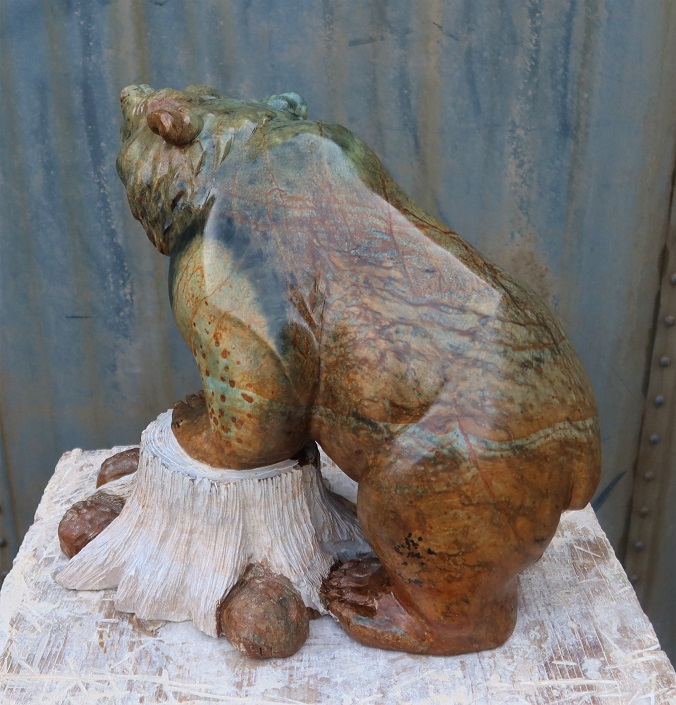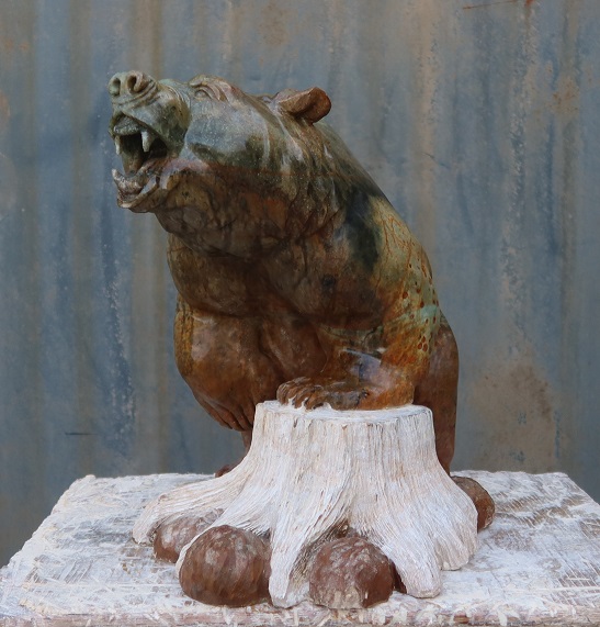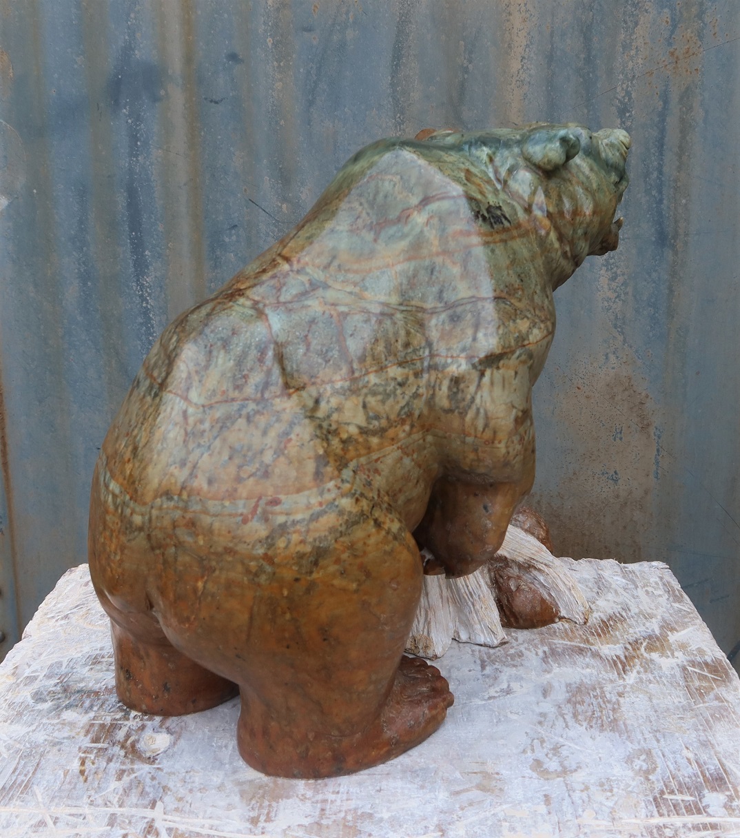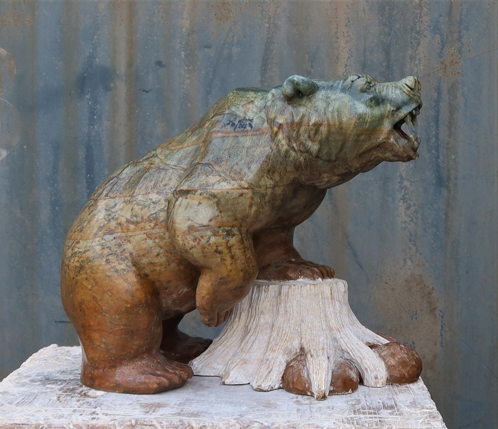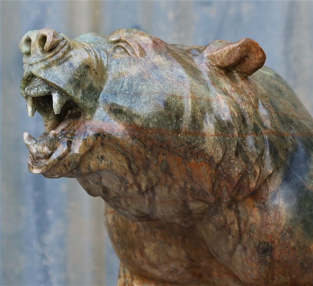 Title: North Animal: Roaring Grizzly Bear Stone: Brazilian Soapstone Dimensions: 15H x 13L x 11W inch Weight: 70LB.