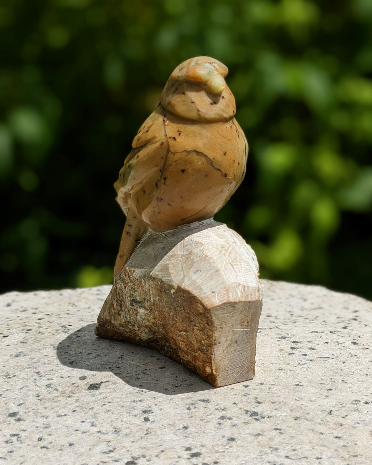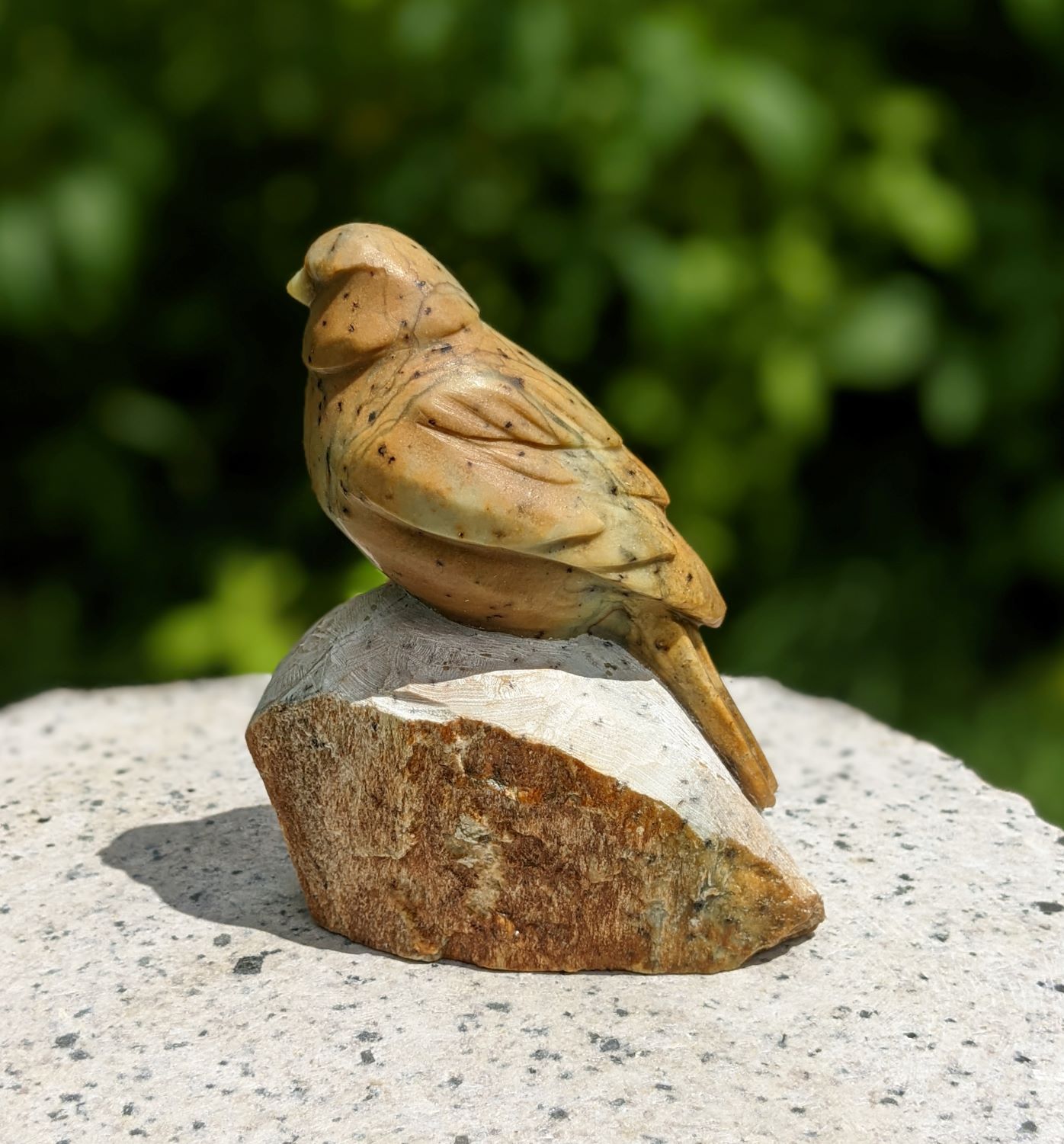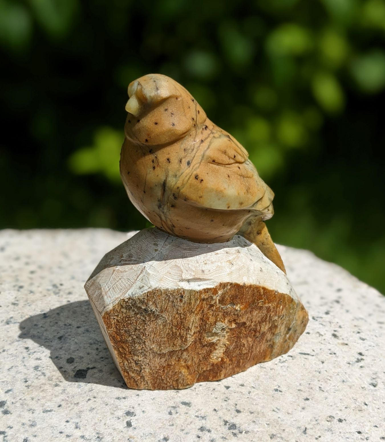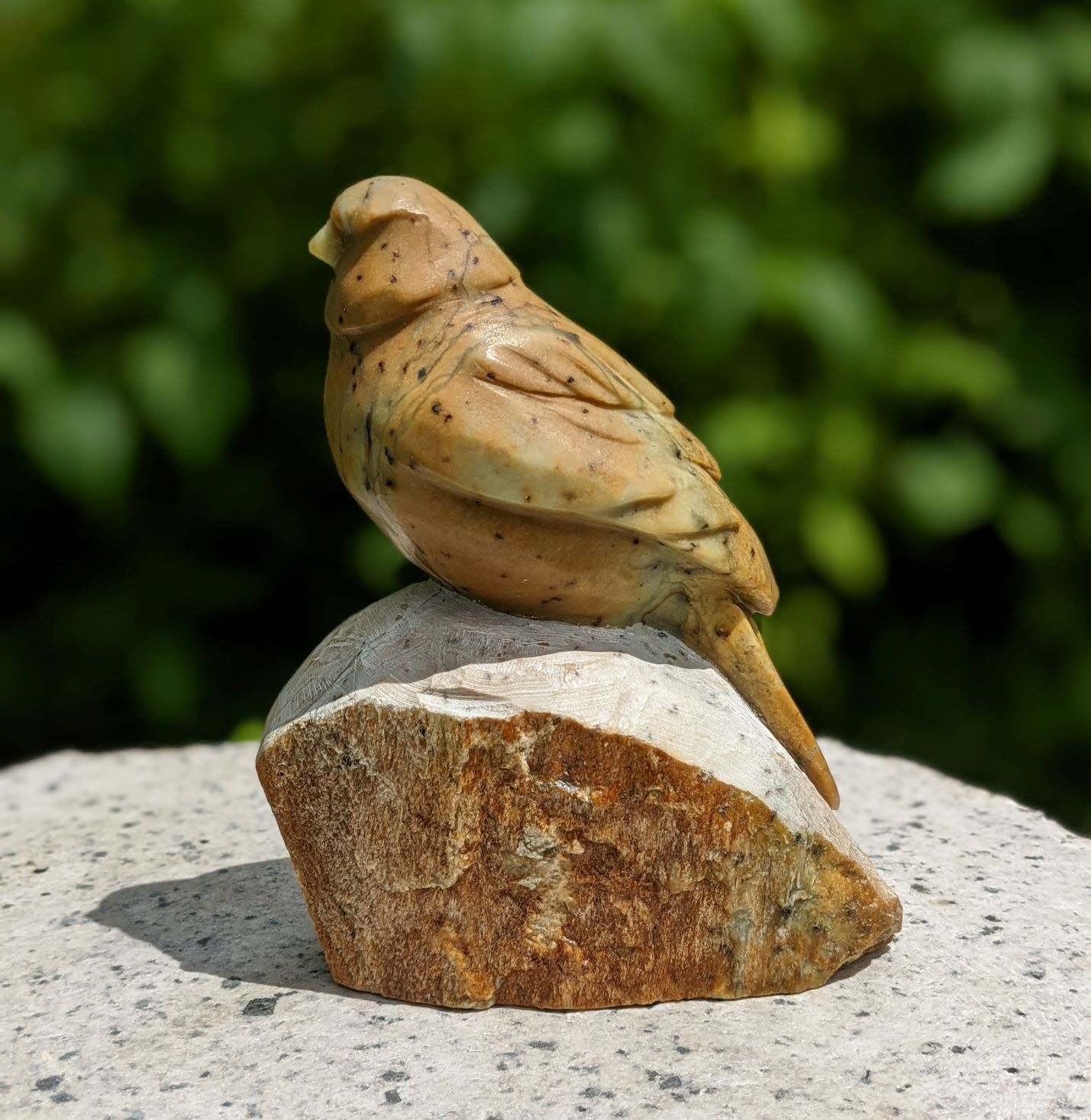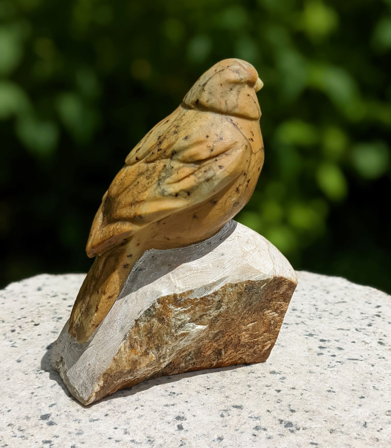 Songbird# 5 – Stone Sketch Animal: Song Bird Stone Type: Brazilian Soapstone Dimensions: 6(H) x 4(L) x 1.75(W) inch Signed on the Bottom