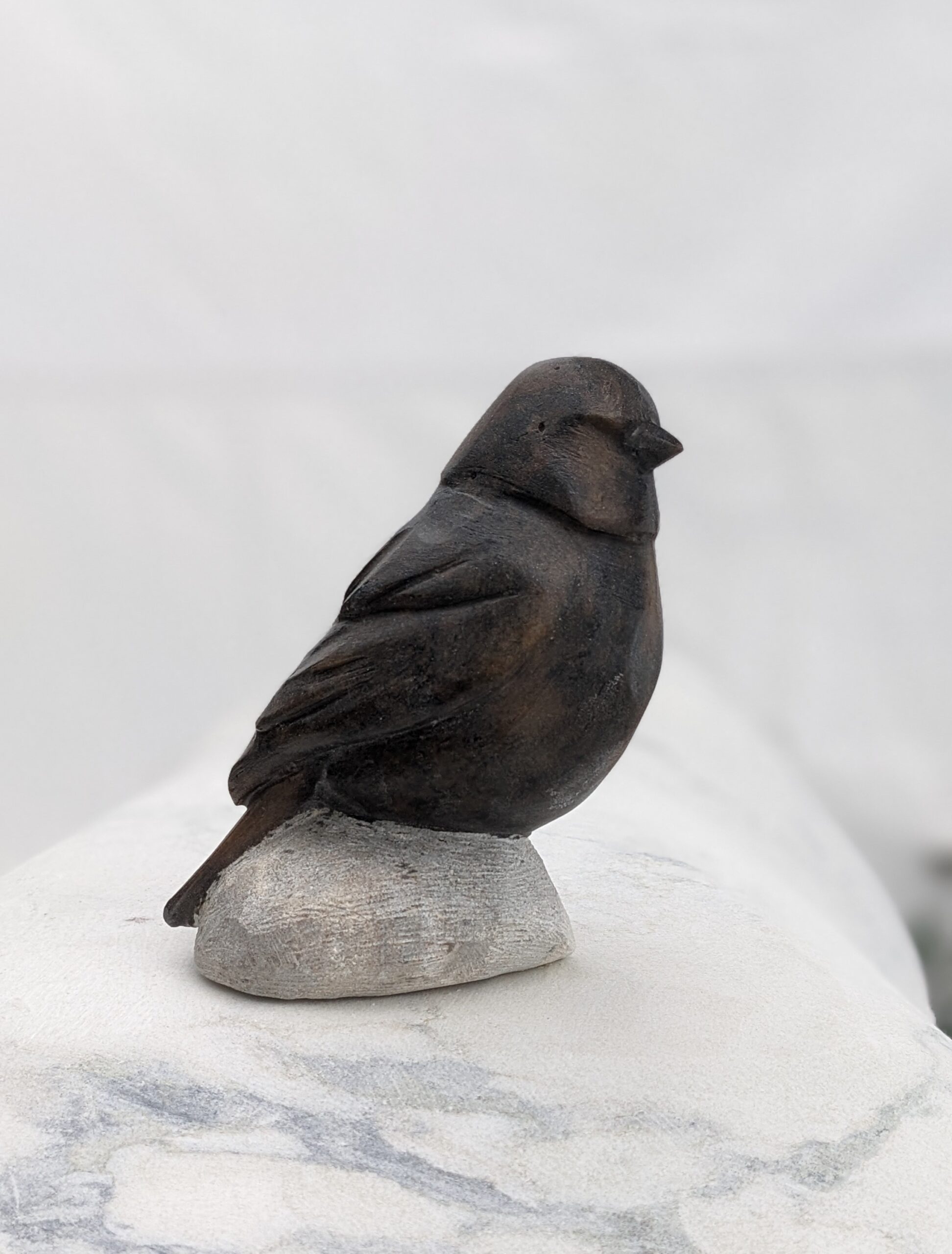 Songbird #8 – Stone Sketch Animal: Song Bird Stone Type: Brazilian Soapstone Dimensions: 4(H) x 2.5(L) x 2(W) inch Signed on the Bottom