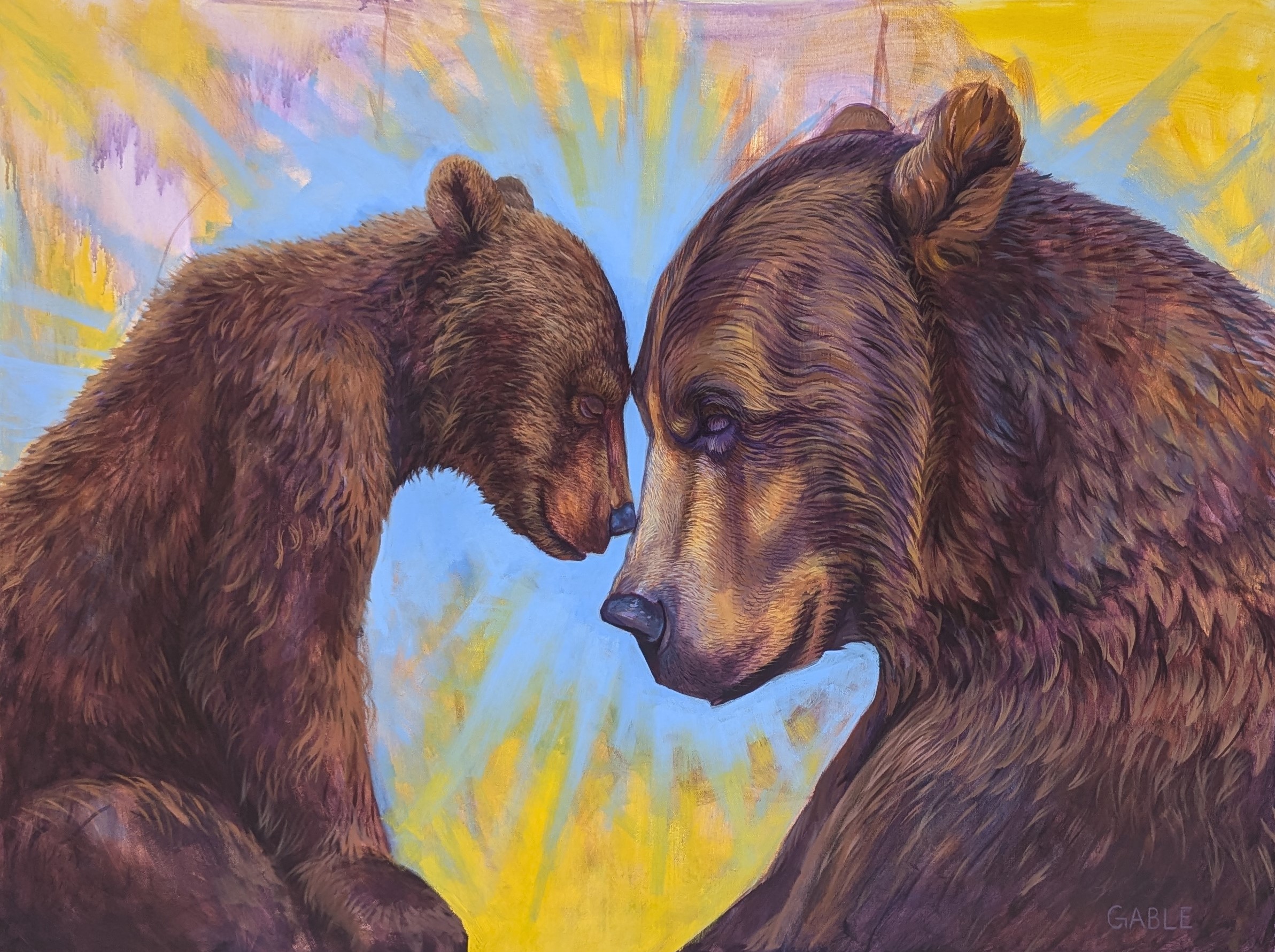 Original 1/1 Grizzly Bears Acrylic On Canvas 36 x 48 x 1.5 inch Ready To Hang or Frame Signed