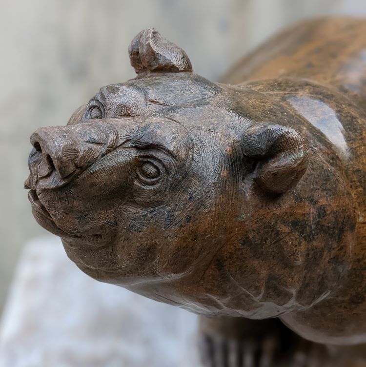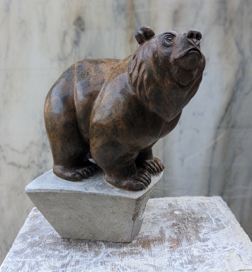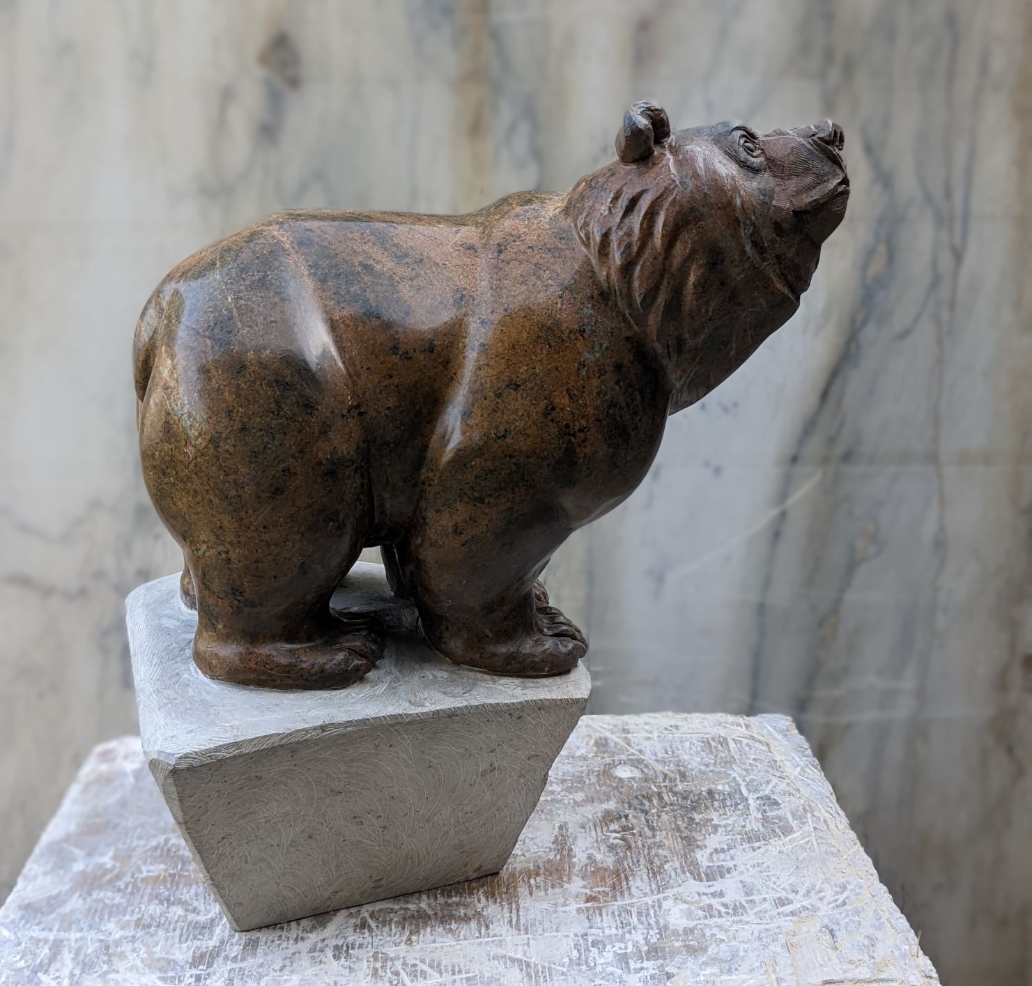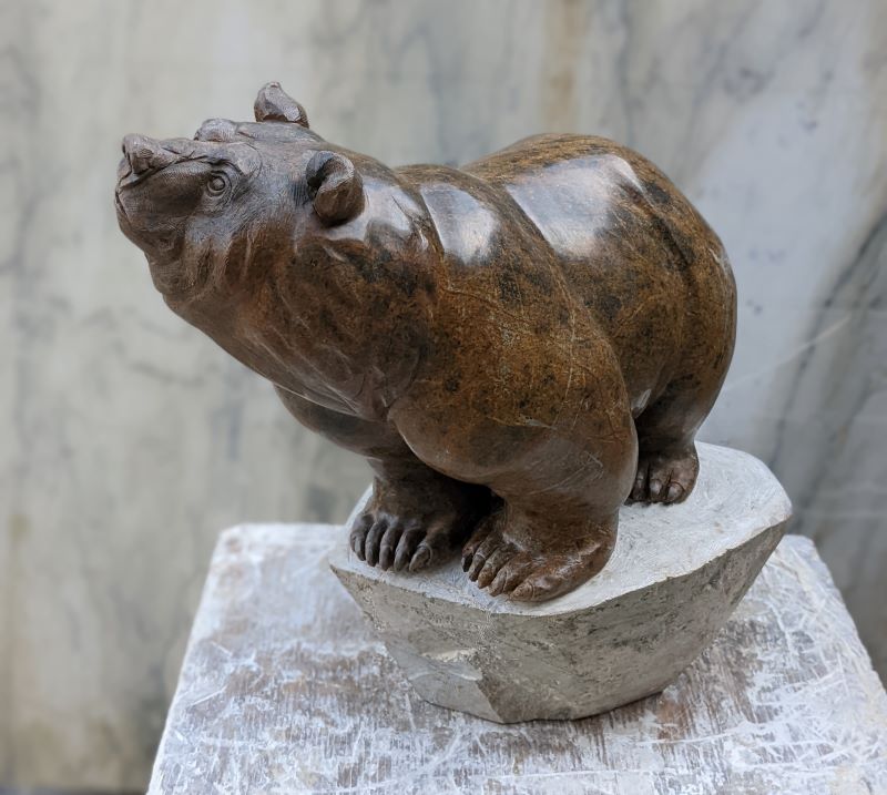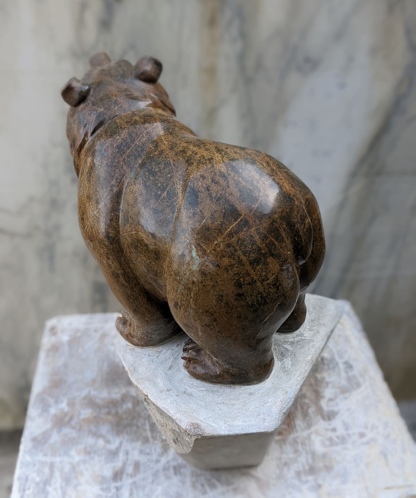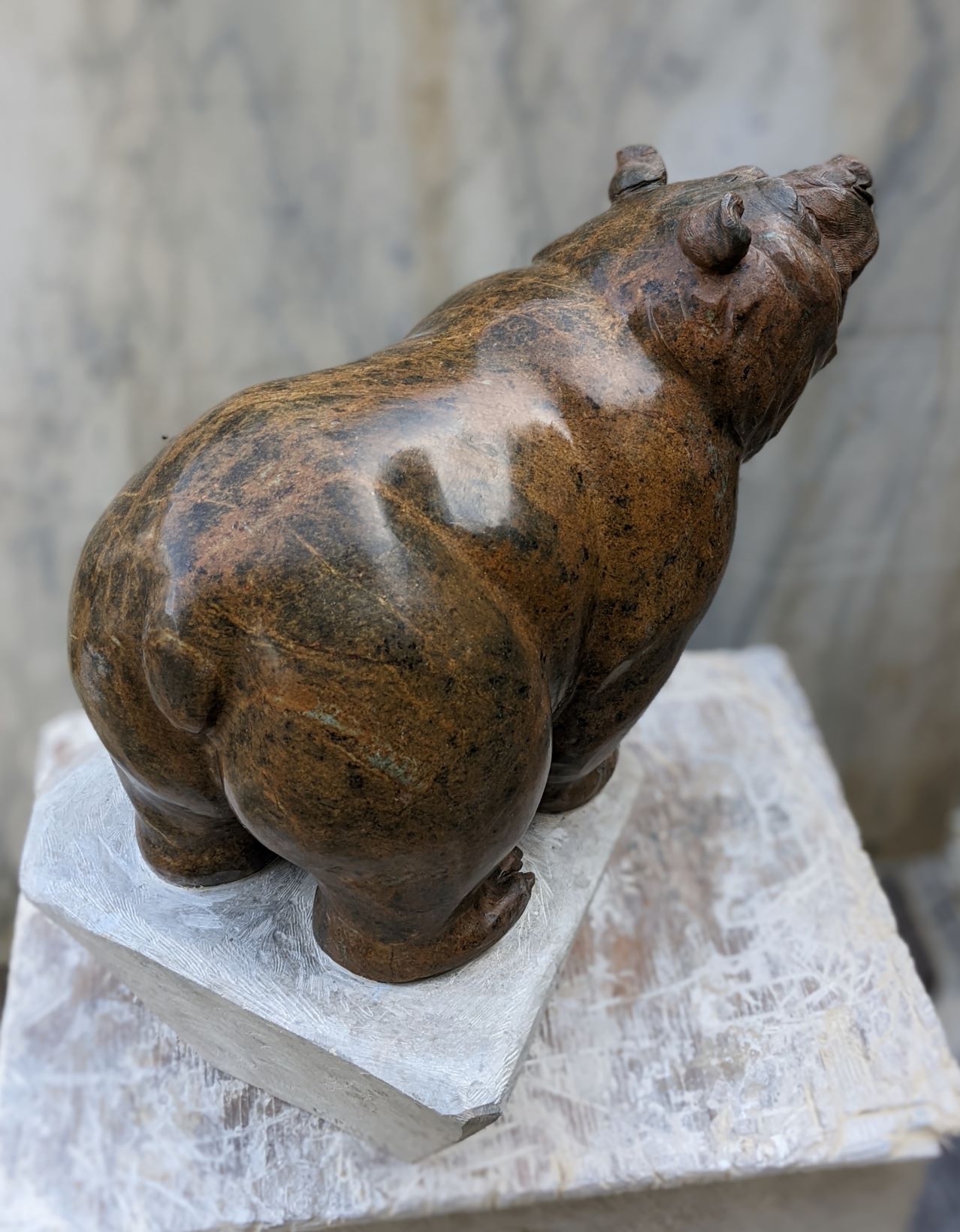 Title: Starry Night Animal: Grizzly Bear Stone: Brazilian Soapstone Dimensions: 15.5H x 17L x 11W inch Weight: 80LB.