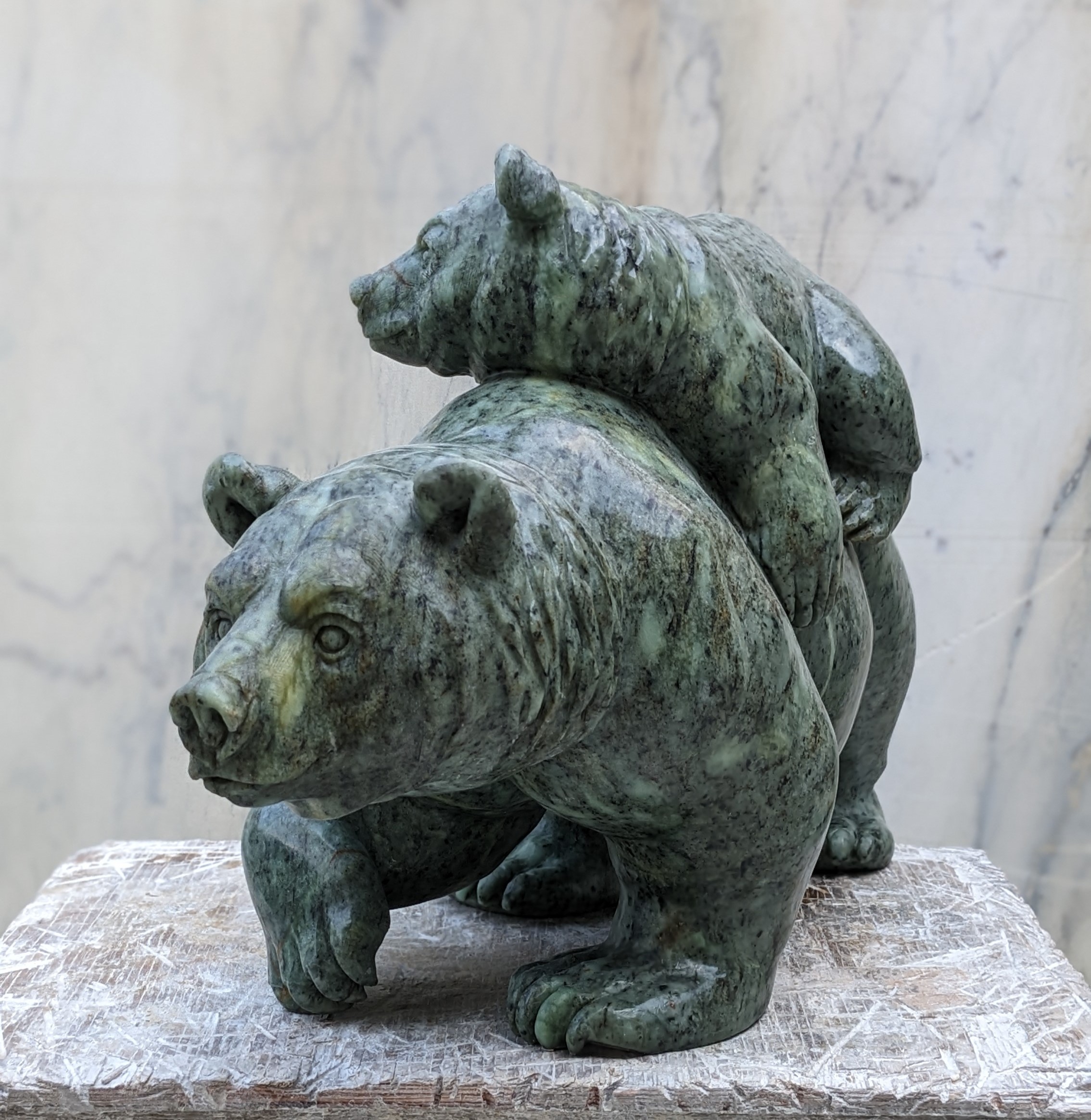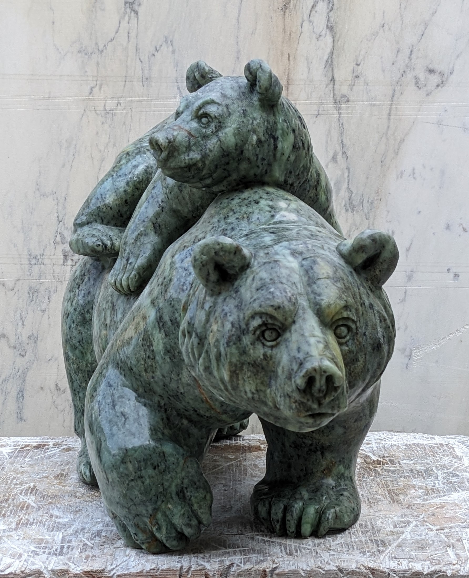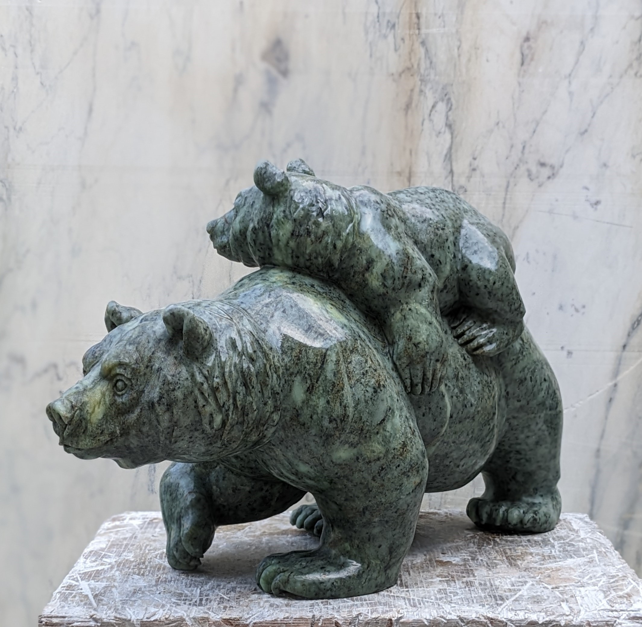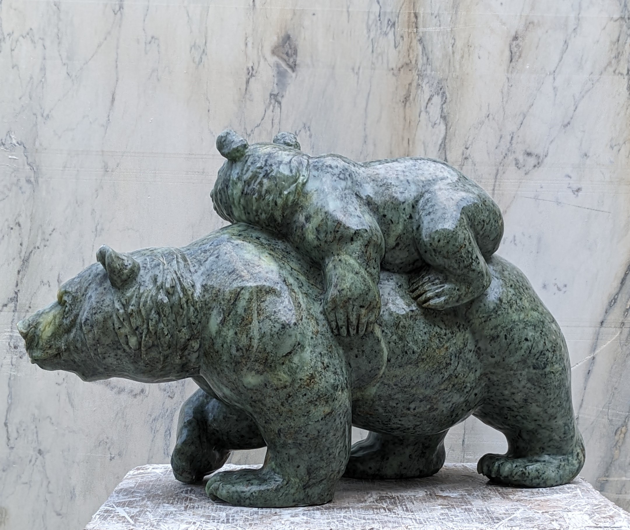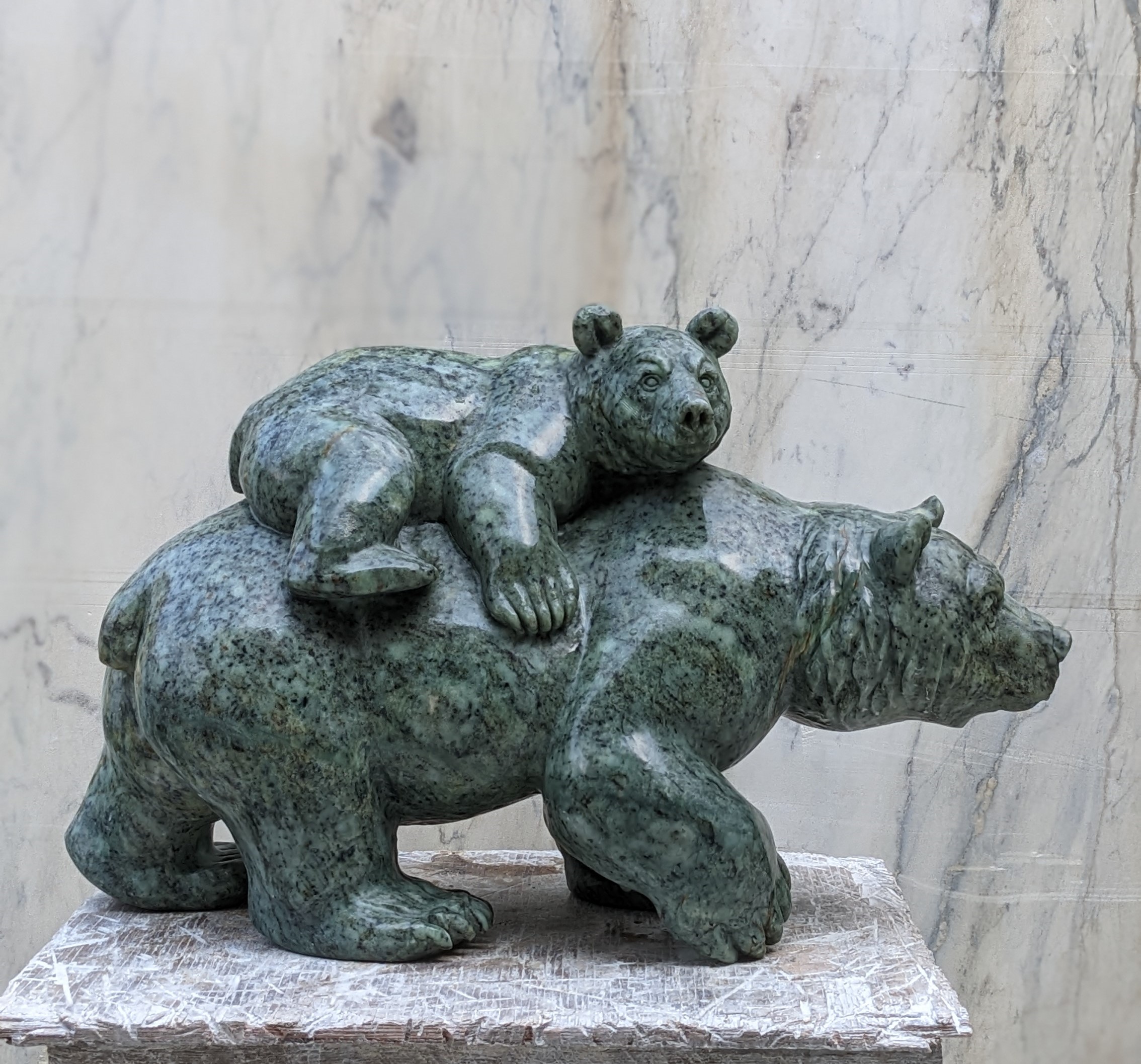 Over the years of carving I can’t help but refine my techniques. One of my favorite things to do is utilize texture to bring out the details of the face. Soapstone is a beautiful material and blends itself well to textured and highly polished finishes. Here is a deeper look into my newest carving of a mother and Cub grizzly bear. #Artist #soapstonecarving #soapstone #artgallery #artcollection #onlineartgallery #originalart #originalstonecarving #wildlifeart #animalcarving #animalsculptures #andrewgableart #canadianfineart #entreprenuer #artist #artgallery #natureart #collector
